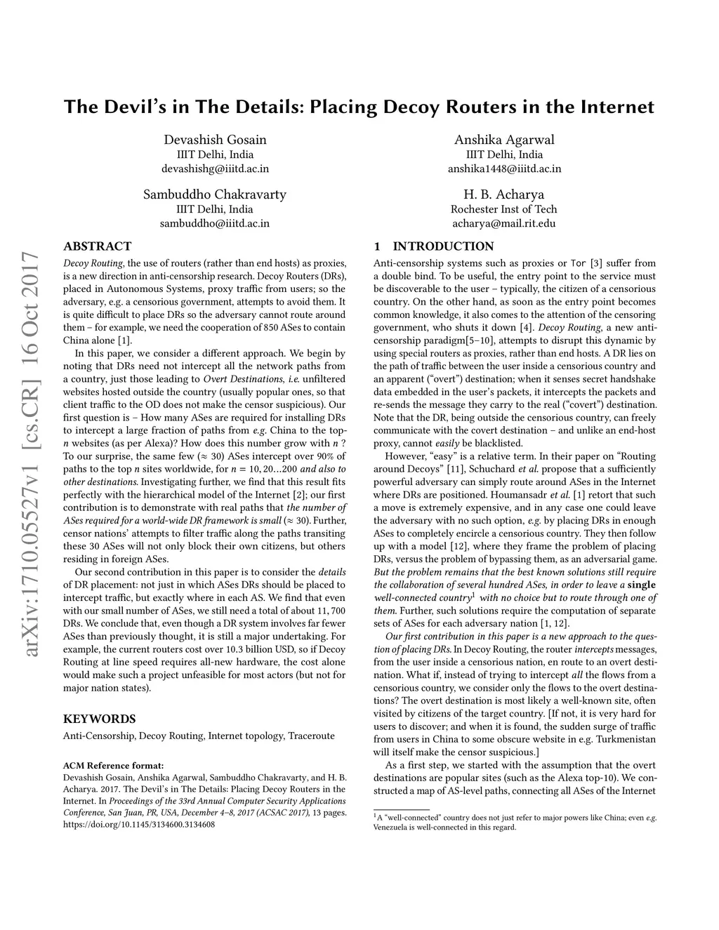The Devils in The Details: Placing Decoy Routers in the Internet