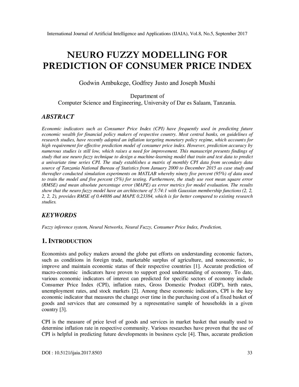 Neuro Fuzzy Modelling for Prediction of Consumer Price Index