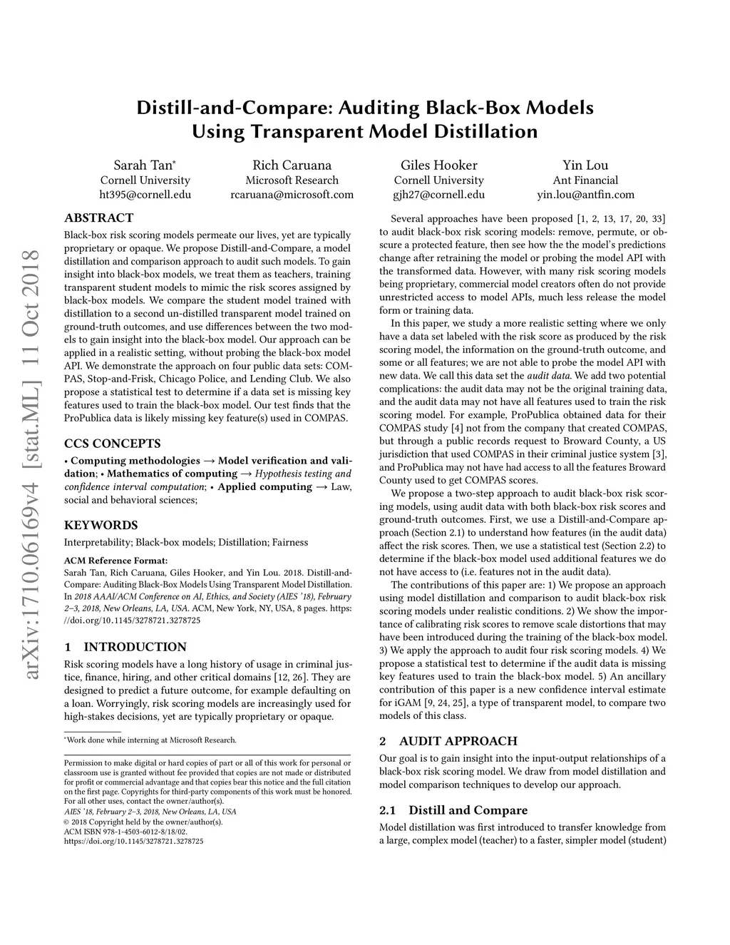 Distill-and-Compare: Auditing Black-Box Models Using Transparent Model