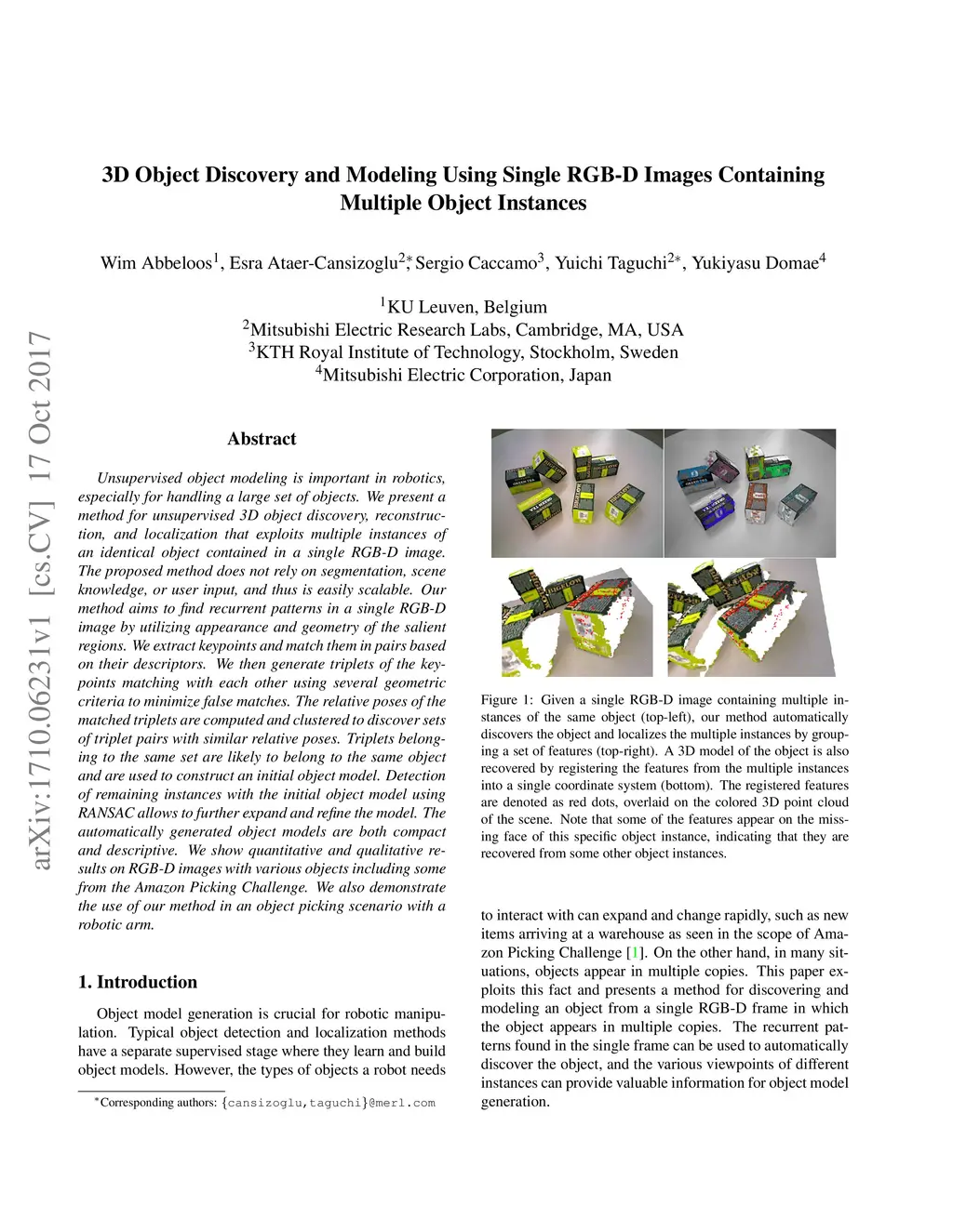 3D Object Discovery and Modeling Using Single RGB-D Images Containing
