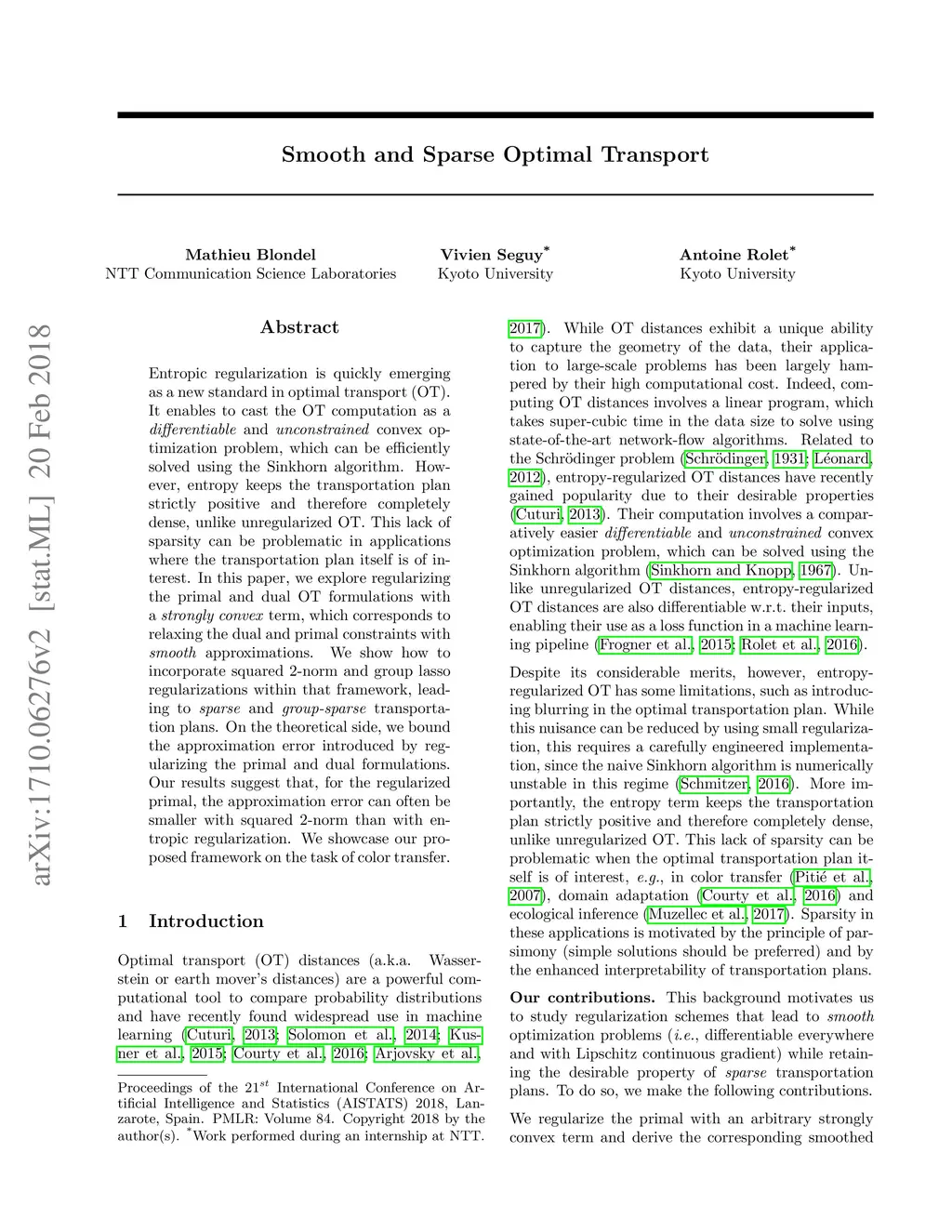 Smooth and Sparse Optimal Transport