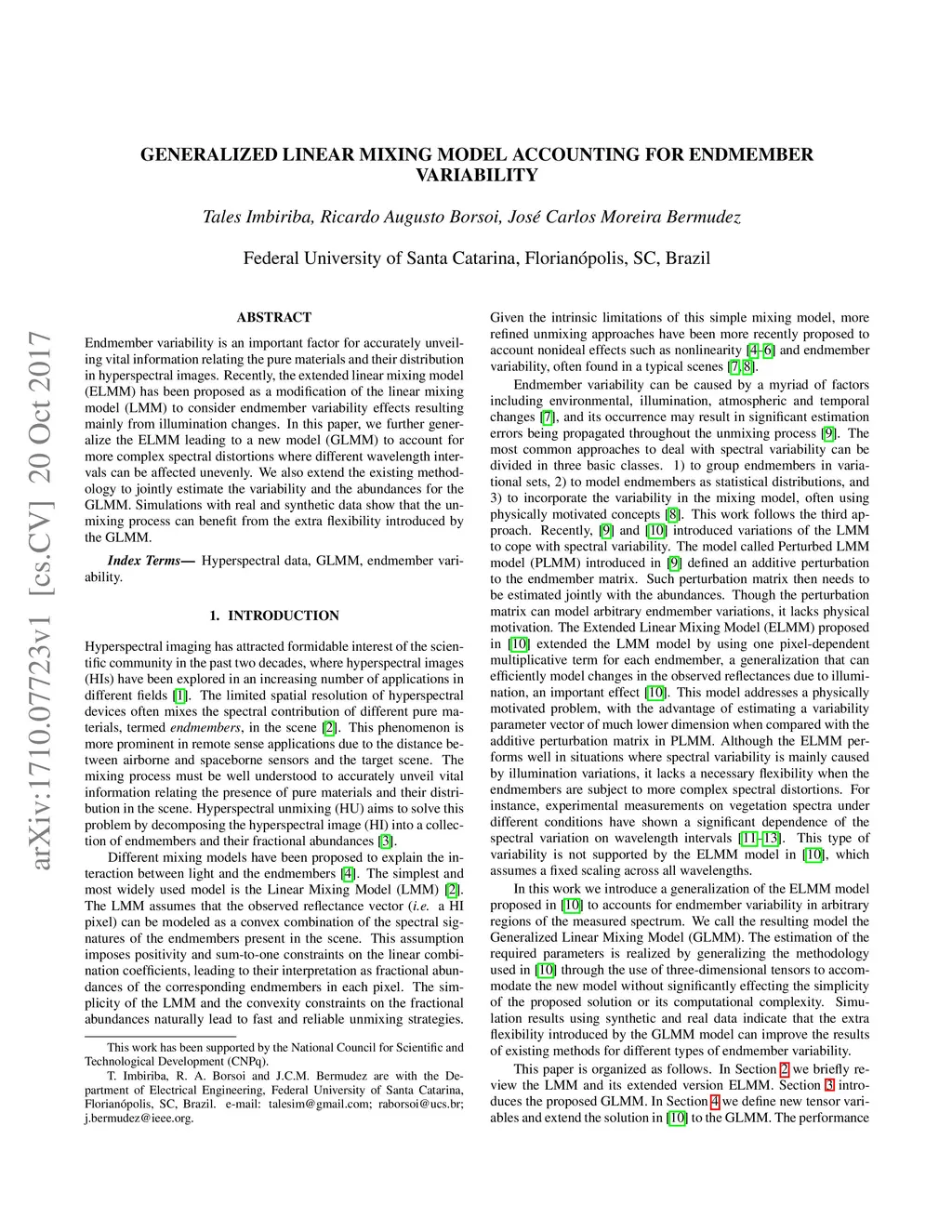 Generalized linear mixing model accounting for endmember variability