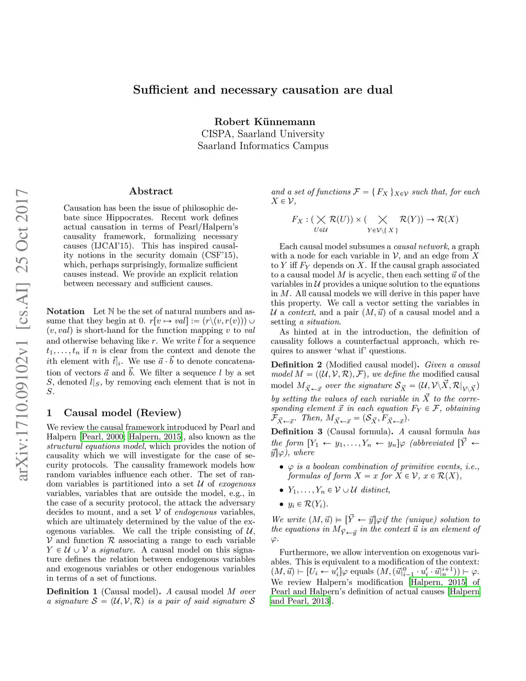 Causation has been the issue of philosophic debate since Hippocrates. Recent work defines actual causation in terms of Pearl/Halpern's causality framework, formalizing necessary causes (IJCAI'15). This has inspired causality notions in the security domain (CSF'15), which, perhaps surprisingly, formalize sufficient causes instead. We provide an explicit relation between necessary and sufficient causes.