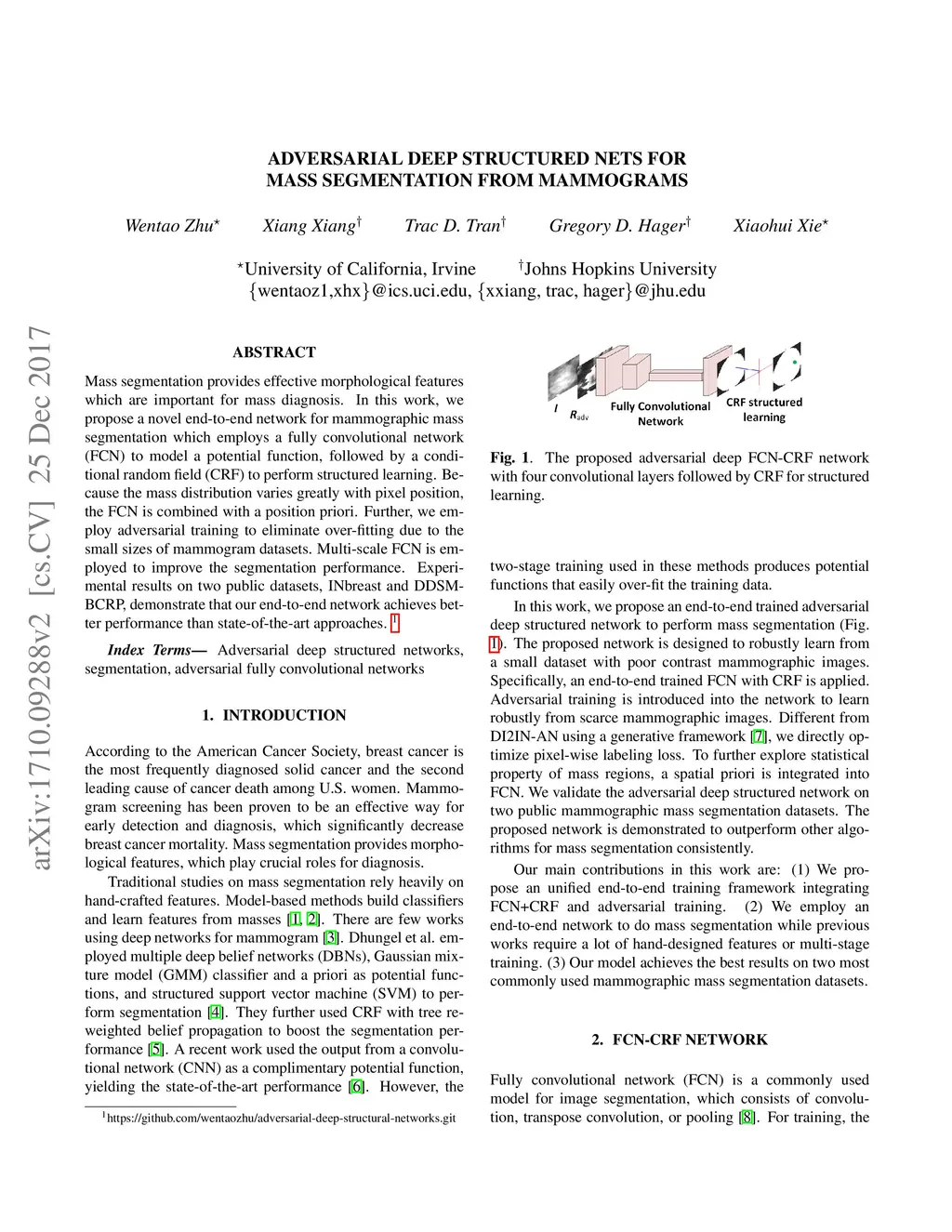 Adversarial Deep Structured Nets for Mass Segmentation from Mammograms
