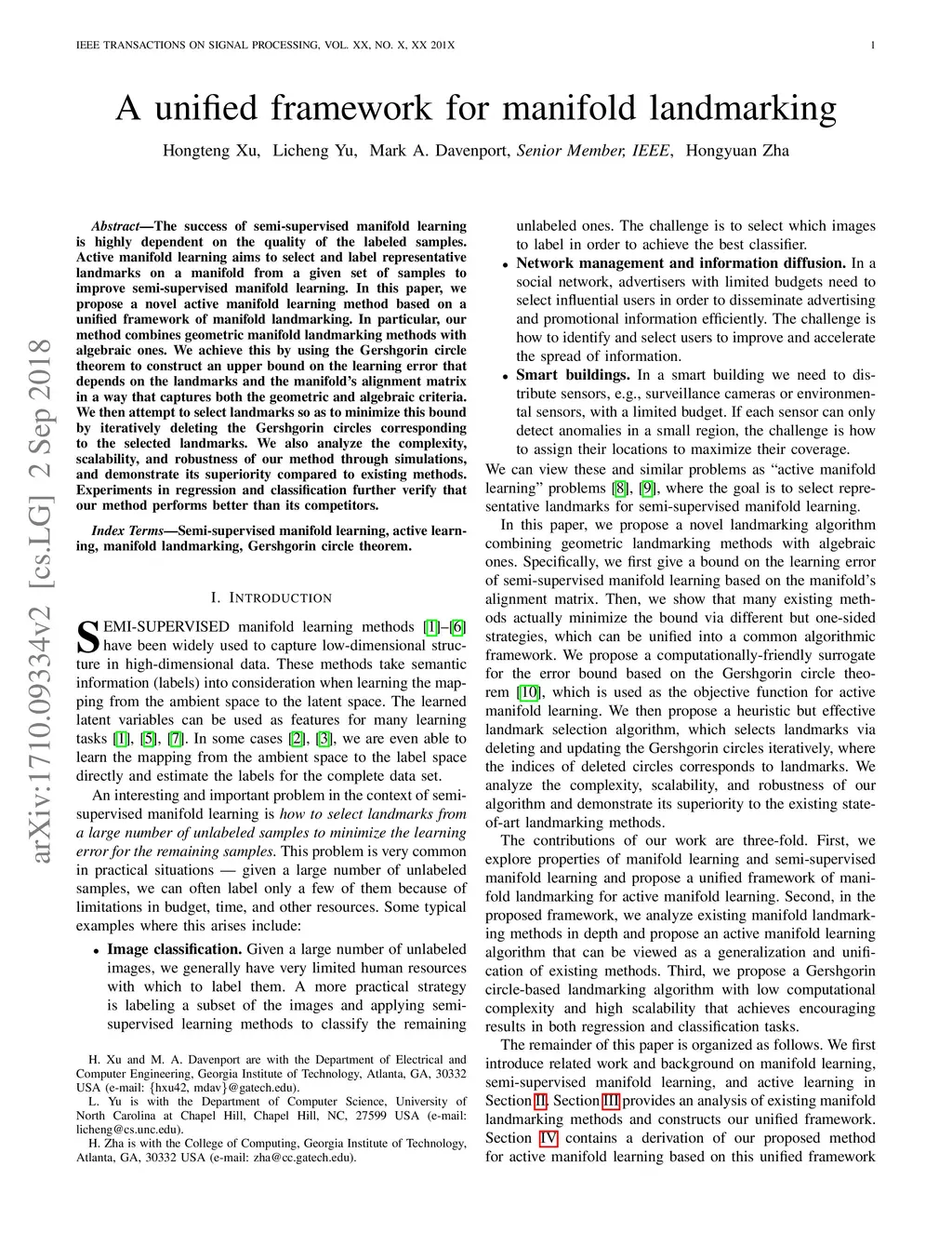 The success of semi-supervised manifold learning is highly dependent on the quality of the labeled samples. Active manifold learning aims to select and label representative landmarks on a manifold from a given set of samples to improve semi-supervised manifold learning. In this paper, we propose a novel active manifold learning method based on a unified framework of manifold landmarking. In particular, our method combines geometric manifold landmarking methods with algebraic ones. We achieve this by using the Gershgorin circle theorem to construct an upper bound on the learning error that depends on the landmarks and the manifold's alignment matrix in a way that captures both the geometric and algebraic criteria. We then attempt to select landmarks so as to minimize this bound by iteratively deleting the Gershgorin circles corresponding to the selected landmarks. We also analyze the complexity, scalability, and robustness of our method through simulations, and demonstrate its superiority compared to existing methods. Experiments in regression and classification further verify that our method performs better than its competitors.