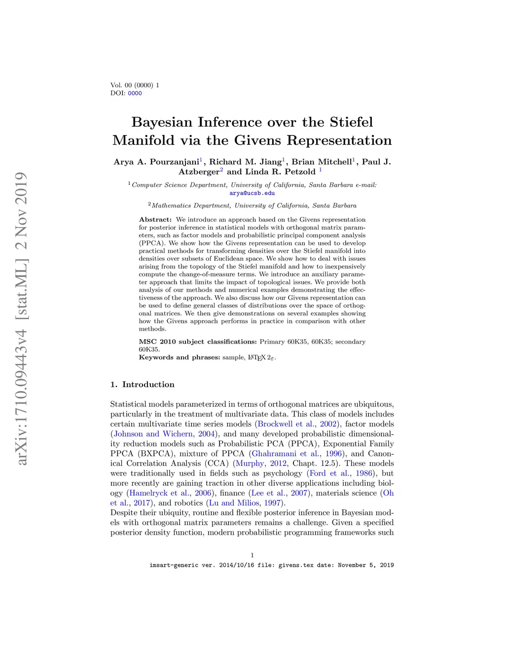 We introduce the Givens Transform, a novel transform between the space of orthonormal matrices and . The Givens Transform allows for the application of any general Bayesian inference algorithm to probabilistic models containing constrained unit-vectors or orthonormal matrix parameters. This includes a variety of matrix factorizations and dimensionality reduction models such as Probabilistic PCA (PPCA), Exponential Family PPCA (BXPCA), and Canonical Correlation Analysis (CCA). While previous Bayesian approaches to these models relied on separate sampling update rules for constrained and unconstrained parameters, the Givens Transform enables the treatment of unit-vectors and orthonormal matrices agnostically as unconstrained parameters. Thus any Bayesian inference algorithm can be used on these models without modification. This opens the door to not just sampling algorithms, but Variational Inference (VI) as well. We illustrate with several examples and supplied code, how the Givens Transform allows end-users to easily build complex models in their favorite Bayesian modeling framework such as Stan, Edward, or PyMC3, a task that was previously intractable due to technical constraints.