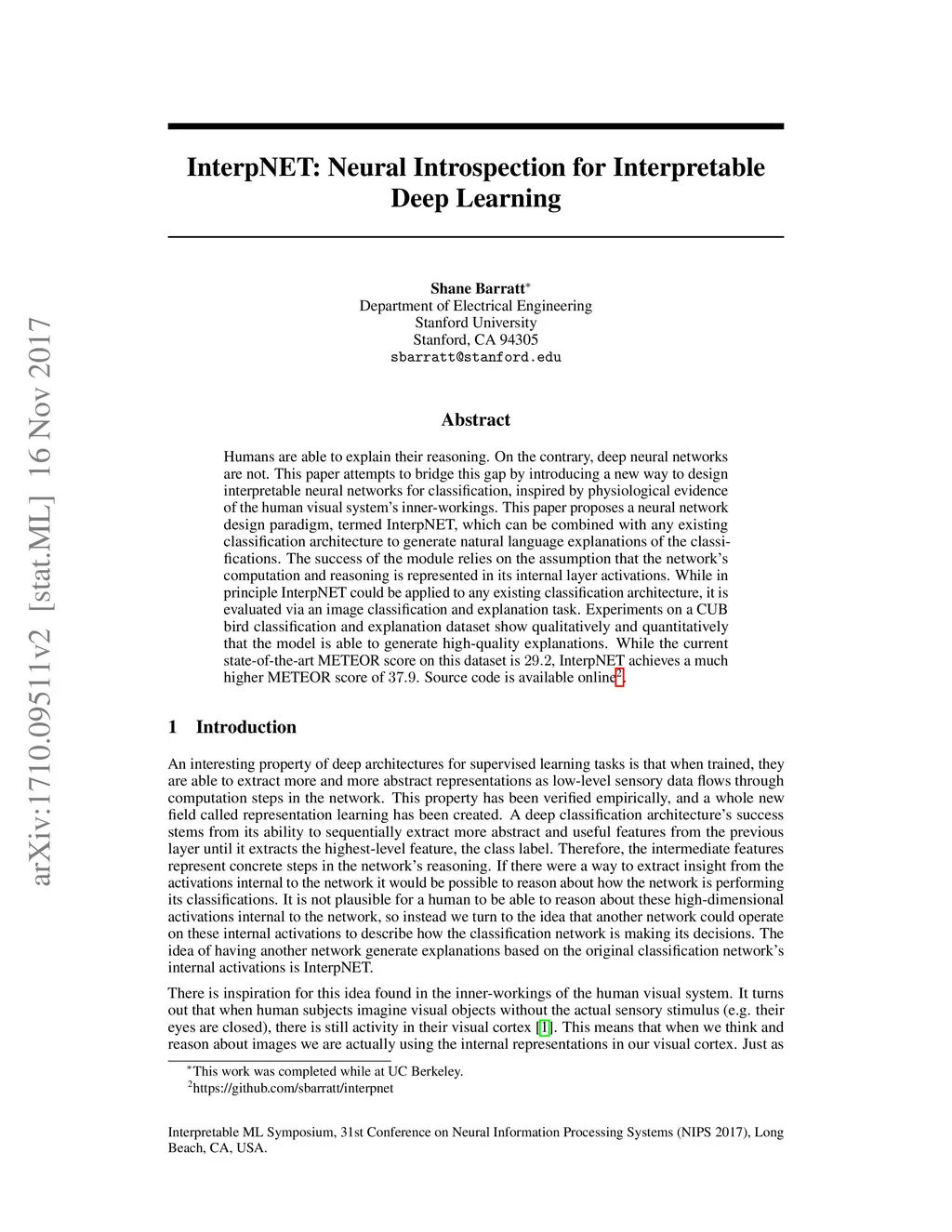 InterpNET: Neural Introspection for Interpretable Deep Learning