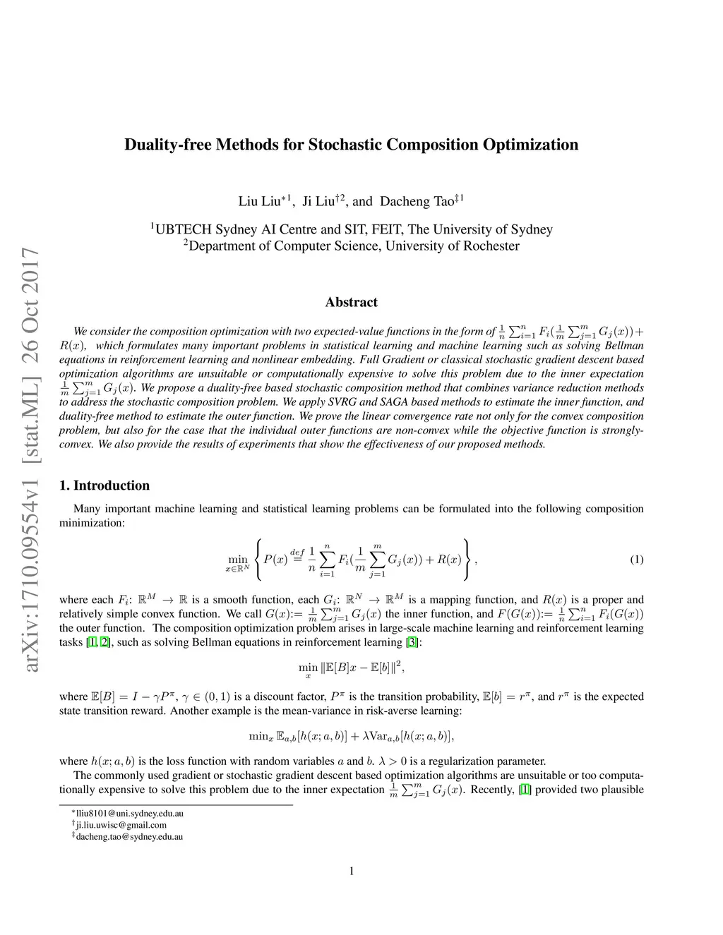 We consider the composition optimization with two expected-value functions in the form of , { which formulates many important problems in statistical learning and machine learning such as solving Bellman equations in reinforcement learning and nonlinear embedding}. Full Gradient or classical stochastic gradient descent based optimization algorithms are unsuitable or computationally expensive to solve this problem due to the inner expectation . We propose a duality-free based stochastic composition method that combines variance reduction methods to address the stochastic composition problem. We apply SVRG and SAGA based methods to estimate the inner function, and duality-free method to estimate the outer function. We prove the linear convergence rate not only for the convex composition problem, but also for the case that the individual outer functions are non-convex while the objective function is strongly-convex. We also provide the results of experiments that show the effectiveness of our proposed methods.