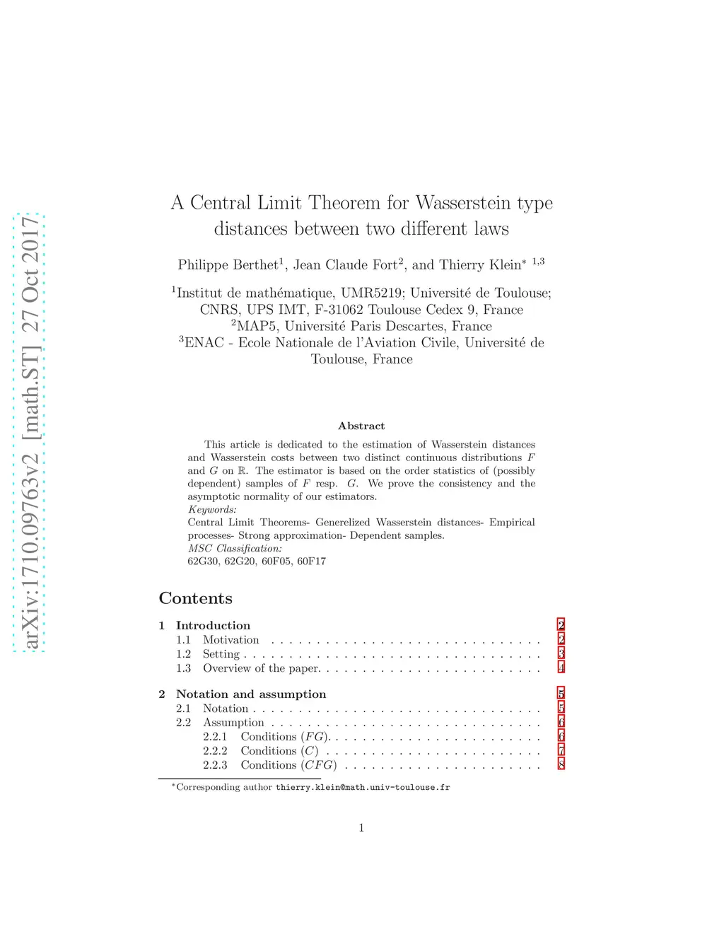 This article is dedicated to the estimation of Wasserstein distances and Wasserstein costs between two distinct continuous distributions and on . The estimator is based on the order statistics of (possibly dependent) samples of resp. . We prove the consistency and the asymptotic normality of our estimators. \begin{it}Keywords:\end{it} Central Limit Theorems- Generelized Wasserstein distances- Empirical processes- Strong approximation- Dependent samples.