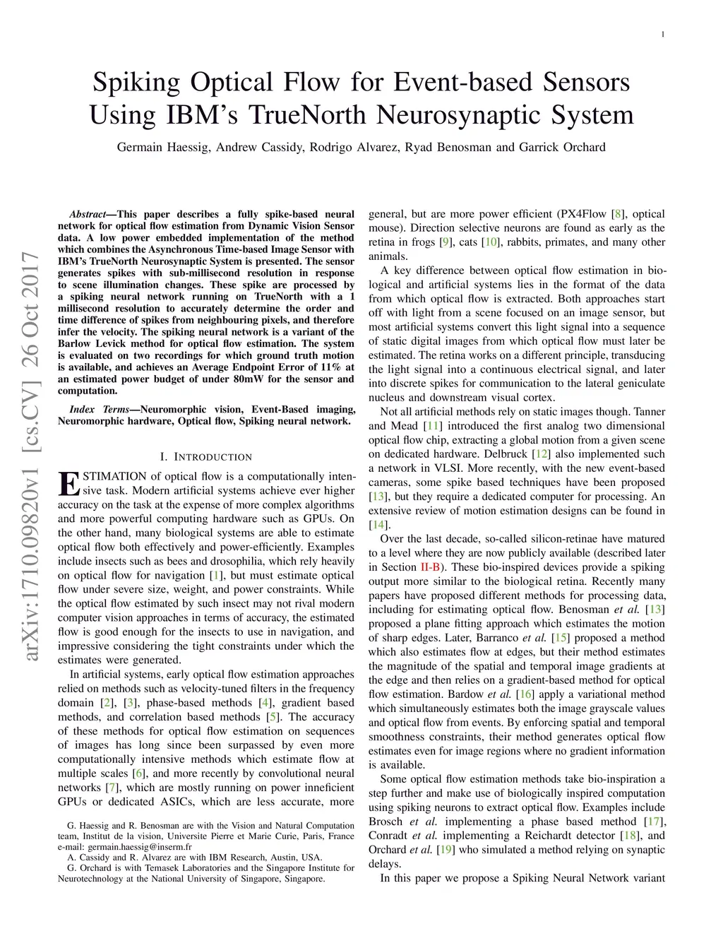 Spiking Optical Flow for Event-based Sensors Using IBM's TrueNorth
