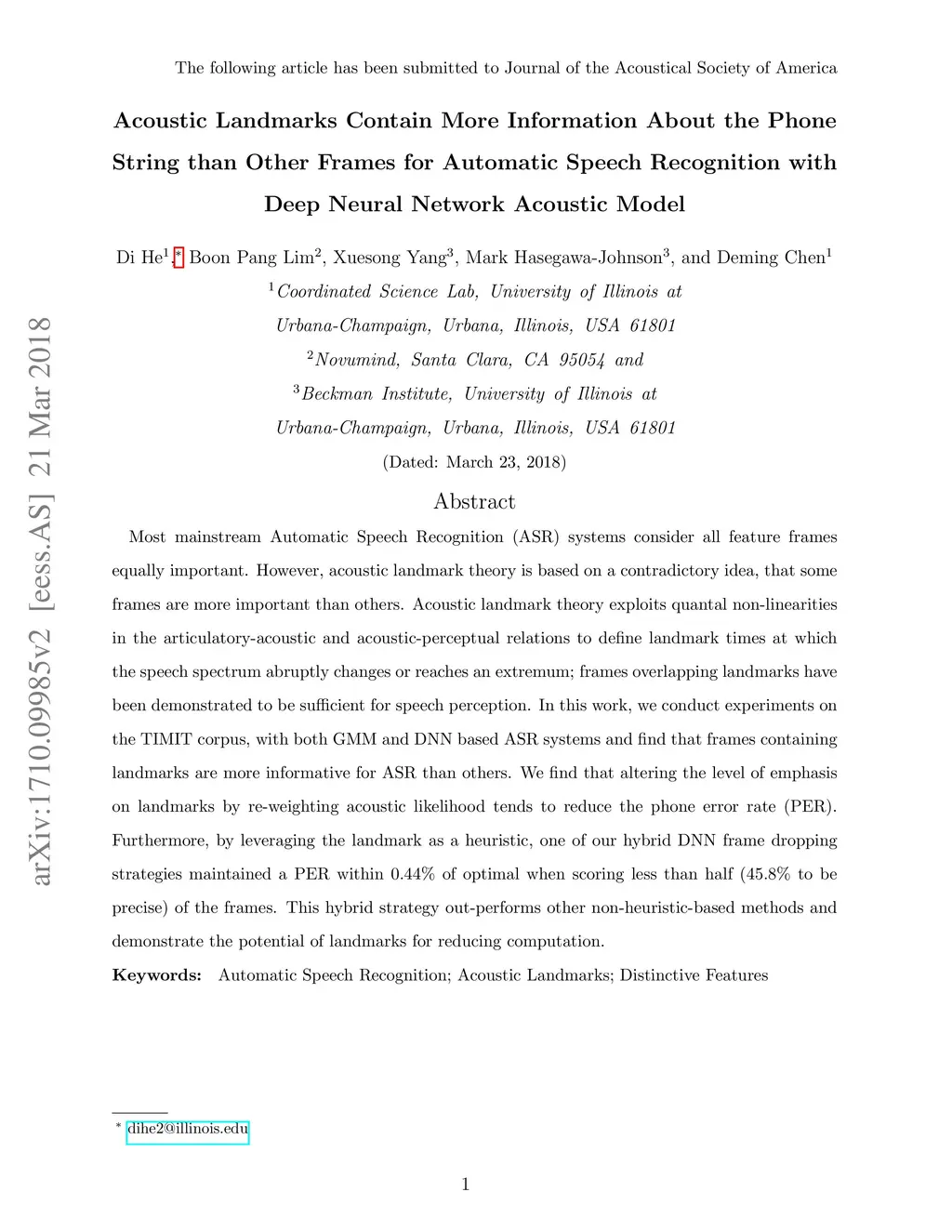 Most mainstream Automatic Speech Recognition (ASR) systems consider all feature frames equally important. However, acoustic landmark theory is based on a contradictory idea, that some frames are more important than others. Acoustic landmark theory exploits quantal non-linearities in the articulatory-acoustic and acoustic-perceptual relations to define landmark times at which the speech spectrum abruptly changes or reaches an extremum; frames overlapping landmarks have been demonstrated to be sufficient for speech perception. In this work, we conduct experiments on the TIMIT corpus, with both GMM and DNN based ASR systems and find that frames containing landmarks are more informative for ASR than others. We find that altering the level of emphasis on landmarks by re-weighting acoustic likelihood tends to reduce the phone error rate (PER). Furthermore, by leveraging the landmark as a heuristic, one of our hybrid DNN frame dropping strategies maintained a PER within 0.44% of optimal when scoring less than half (45.8% to be precise) of the frames. This hybrid strategy out-performs other non-heuristic-based methods and demonstrate the potential of landmarks for reducing computation.