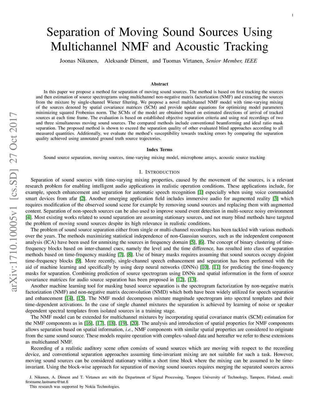 Separation of Moving Sound Sources Using Multichannel NMF and Acoustic