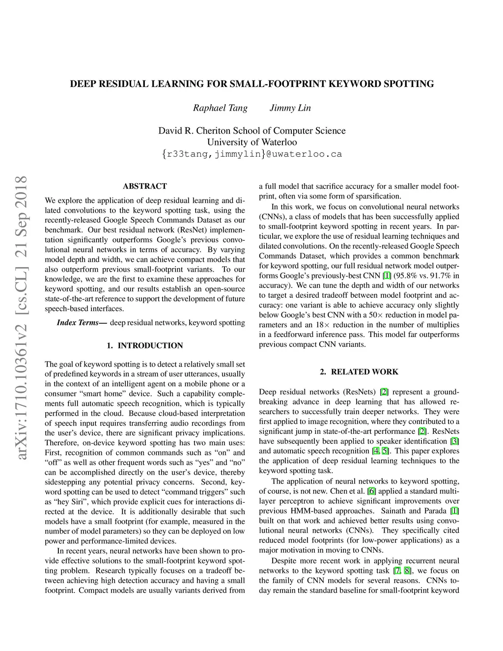 Deep Residual Learning for Small-Footprint Keyword Spotting