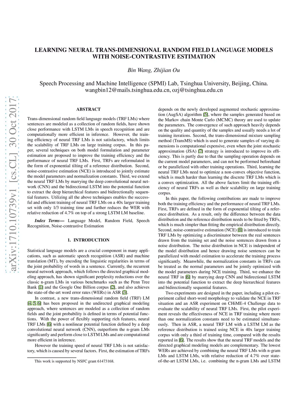 Trans-dimensional random field language models (TRF LMs) where sentences are modeled as a collection of random fields, have shown close performance with LSTM LMs in speech recognition and are computationally more efficient in inference. However, the training efficiency of neural TRF LMs is not satisfactory, which limits the scalability of TRF LMs on large training corpus. In this paper, several techniques on both model formulation and parameter estimation are proposed to improve the training efficiency and the performance of neural TRF LMs. First, TRFs are reformulated in the form of exponential tilting of a reference distribution. Second, noise-contrastive estimation (NCE) is introduced to jointly estimate the model parameters and normalization constants. Third, we extend the neural TRF LMs by marrying the deep convolutional neural network (CNN) and the bidirectional LSTM into the potential function to extract the deep hierarchical features and bidirectionally sequential features. Utilizing all the above techniques enables the successful and efficient training of neural TRF LMs on a 40x larger training set with only 1/3 training time and further reduces the WER with relative reduction of 4.7% on top of a strong LSTM LM baseline.