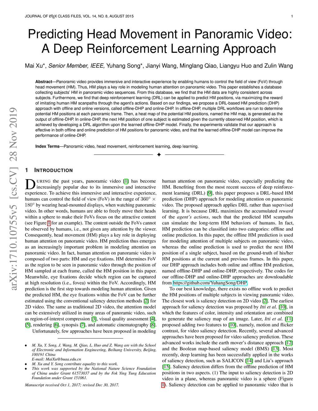 Predicting Head Movement in Panoramic Video: A Deep Reinforcement