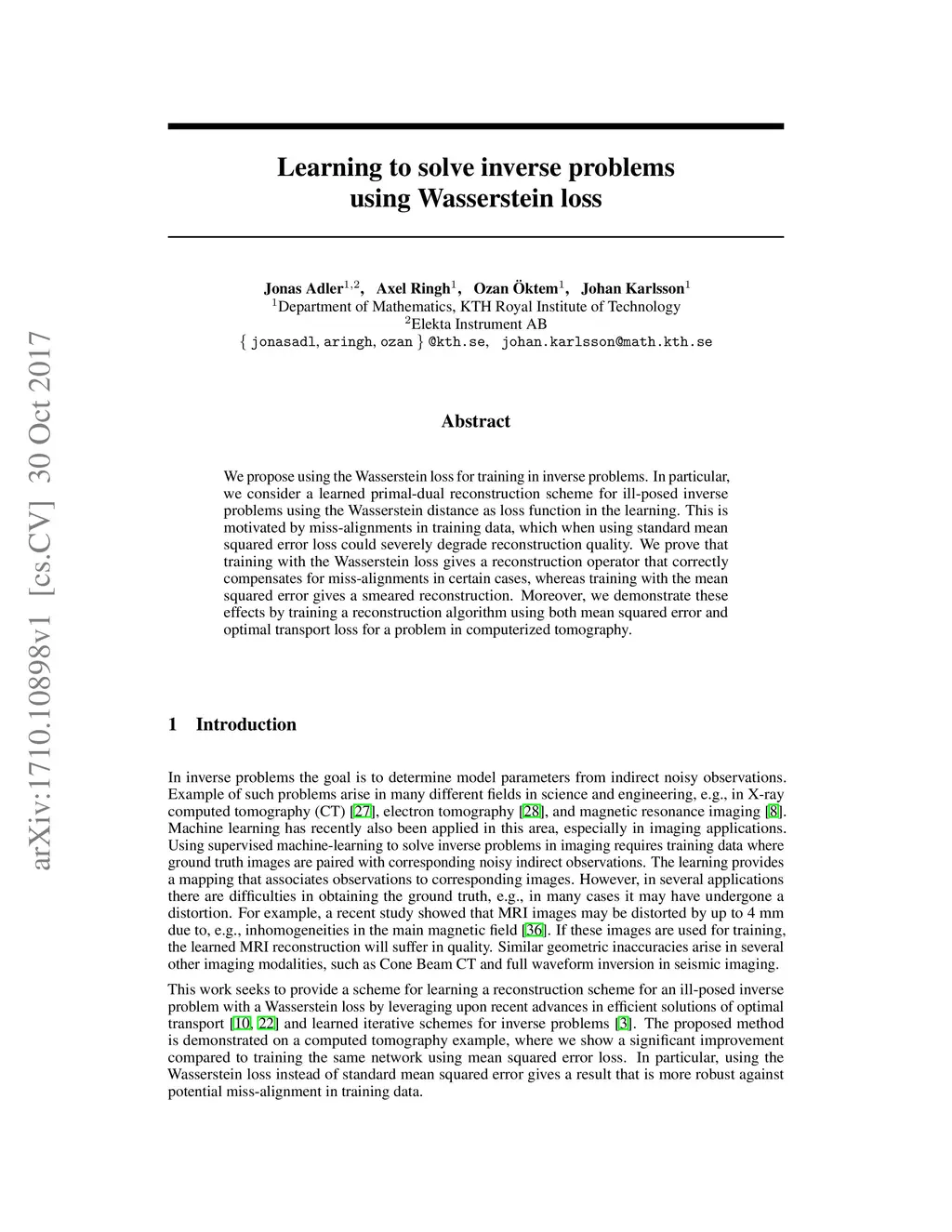 We propose using the Wasserstein loss for training in inverse problems. In particular, we consider a learned primal-dual reconstruction scheme for ill-posed inverse problems using the Wasserstein distance as loss function in the learning. This is motivated by miss-alignments in training data, which when using standard mean squared error loss could severely degrade reconstruction quality. We prove that training with the Wasserstein loss gives a reconstruction operator that correctly compensates for miss-alignments in certain cases, whereas training with the mean squared error gives a smeared reconstruction. Moreover, we demonstrate these effects by training a reconstruction algorithm using both mean squared error and optimal transport loss for a problem in computerized tomography.
