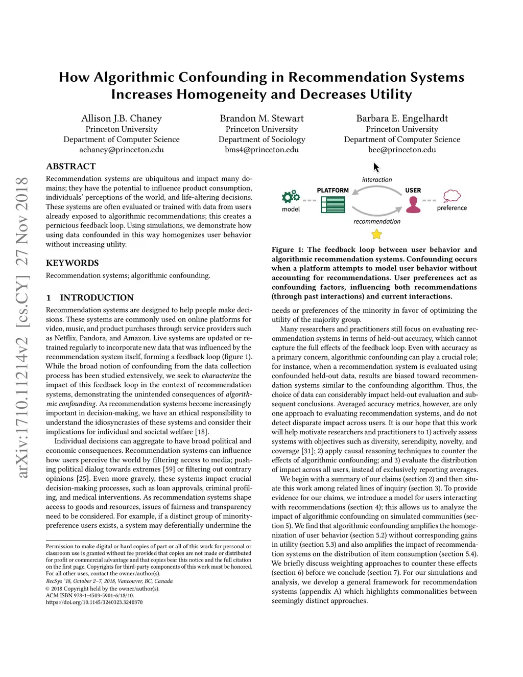Recommendation systems are ubiquitous and impact many domains; they have the potential to influence product consumption, individuals' perceptions of the world, and life-altering decisions. These systems are often evaluated or trained with data from users already exposed to algorithmic recommendations; this creates a pernicious feedback loop. Using simulations, we demonstrate how using data confounded in this way homogenizes user behavior without increasing utility.