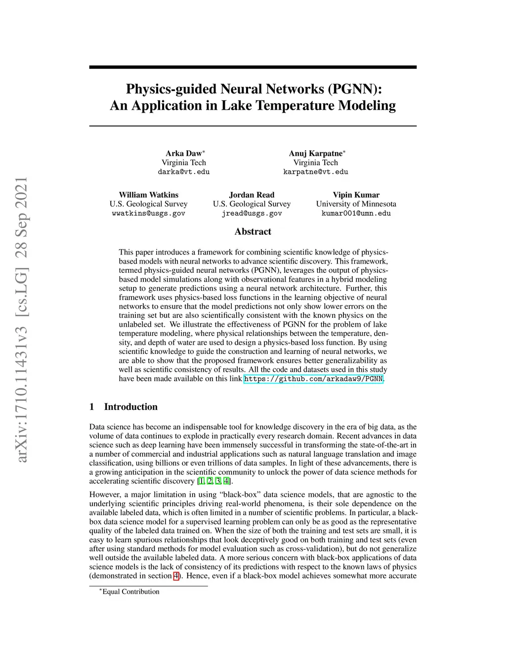 Physics-guided Neural Networks (PGNN): An Application in Lake