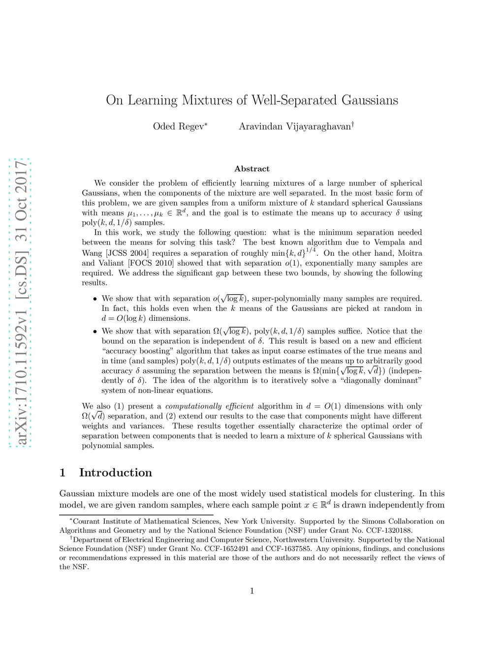 We consider the problem of efficiently learning mixtures of a large number of spherical Gaussians, when the components of the mixture are well separated. In the most basic form of this problem, we are given samples from a uniform mixture of standard spherical Gaussians, and the goal is to estimate the means up to accuracy using samples. In this work, we study the following question: what is the minimum separation needed between the means for solving this task? The best known algorithm due to Vempala and Wang [JCSS 2004] requires a separation of roughly . On the other hand, Moitra and Valiant [FOCS 2010] showed that with separation , exponentially many samples are required. We address the significant gap between these two bounds, by showing the following results. 1. We show that with separation , super-polynomially many samples are required. In fact, this holds even when the means of the Gaussians are picked at random in dimensions. 2. We show that with separation , samples suffice. Note that the bound on the separation is independent of . This result is based on a new and efficient "accuracy boosting" algorithm that takes as input coarse estimates of the true means and in time outputs estimates of the means up to arbitrary accuracy assuming the separation between the means is (independently of ). We also present a computationally efficient algorithm in dimensions with only separation. These results together essentially characterize the optimal order of separation between components that is needed to learn a mixture of spherical Gaussians with polynomial samples.
