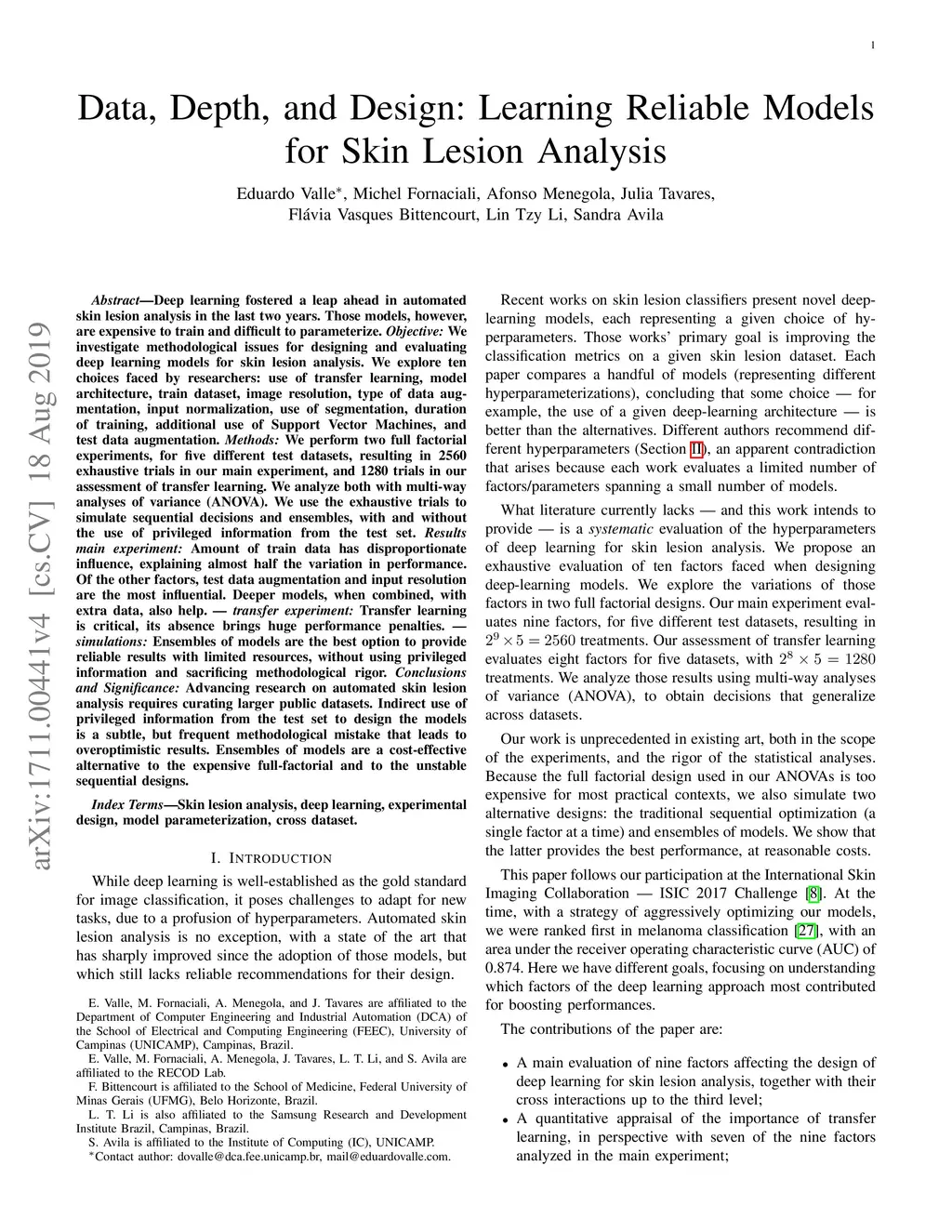 Deep learning fostered a leap ahead in automated skin lesion analysis in the last two years. Those models are expensive to train and difficult to parameterize. Objective: We investigate methodological issues for designing and evaluating deep learning models for skin lesion analysis. We explore 10 choices faced by researchers: use of transfer learning, model architecture, train dataset, image resolution, type of data augmentation, input normalization, use of segmentation, duration of training, additional use of SVMs, and test data augmentation. Methods: We perform two full factorial experiments, for five different test datasets, resulting in 2560 exhaustive trials in our main experiment, and 1280 trials in our assessment of transfer learning. We analyze both with multi-way ANOVA. We use the exhaustive trials to simulate sequential decisions and ensembles, with and without the use of privileged information from the test set. Results -- main experiment: Amount of train data has disproportionate influence, explaining almost half the variation in performance. Of the other factors, test data augmentation and input resolution are the most influential. Deeper models, when combined, with extra data, also help. -- transfer experiment: Transfer learning is critical, its absence brings huge performance penalties. -- simulations: Ensembles of models are the best option to provide reliable results with limited resources, without using privileged information and sacrificing methodological rigor. Conclusions and Significance: Advancing research on automated skin lesion analysis requires curating larger public datasets. Indirect use of privileged information from the test set to design the models is a subtle, but frequent methodological mistake that leads to overoptimistic results. Ensembles of models are a cost-effective alternative to the expensive full-factorial and to the unstable sequential designs.
