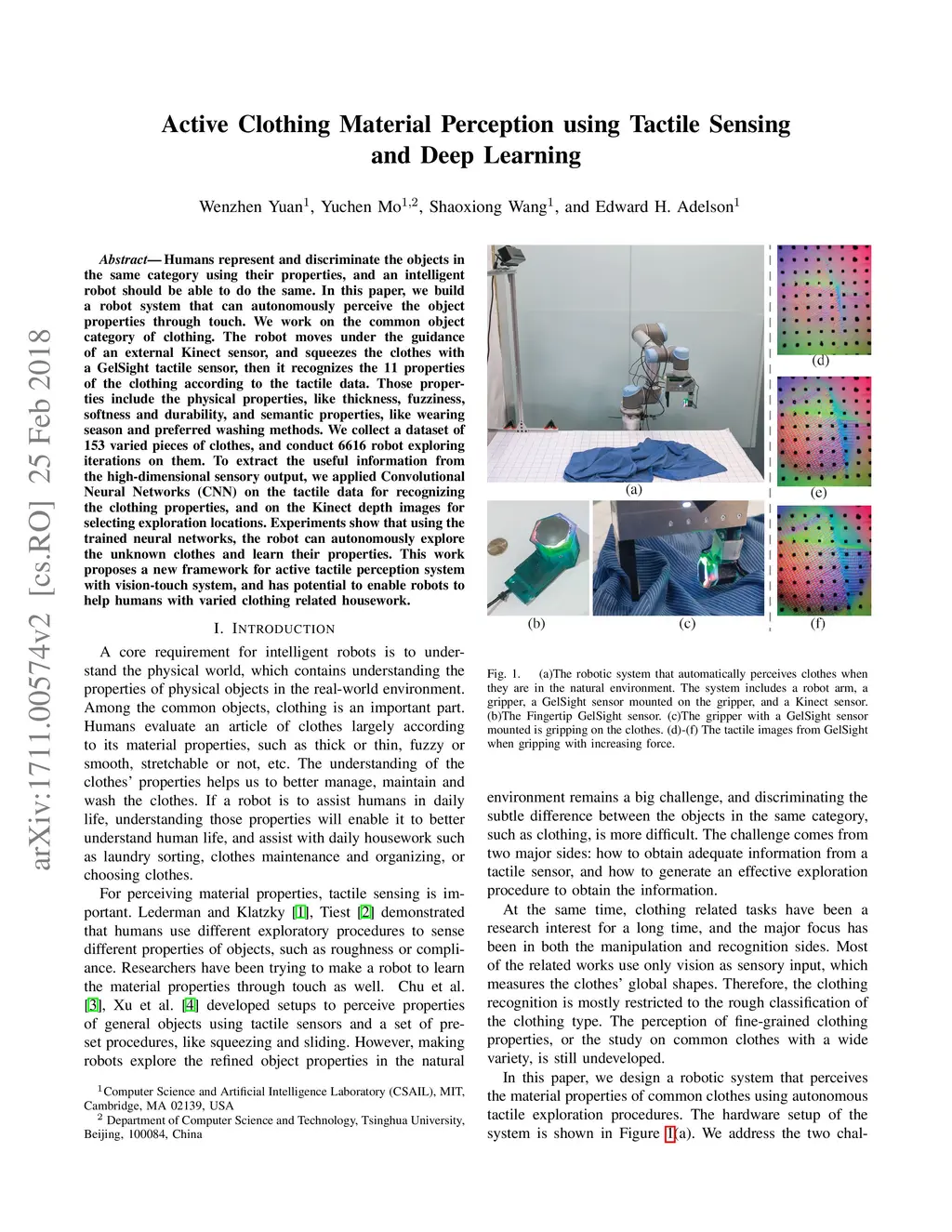 Active Clothing Material Perception using Tactile Sensing and Deep