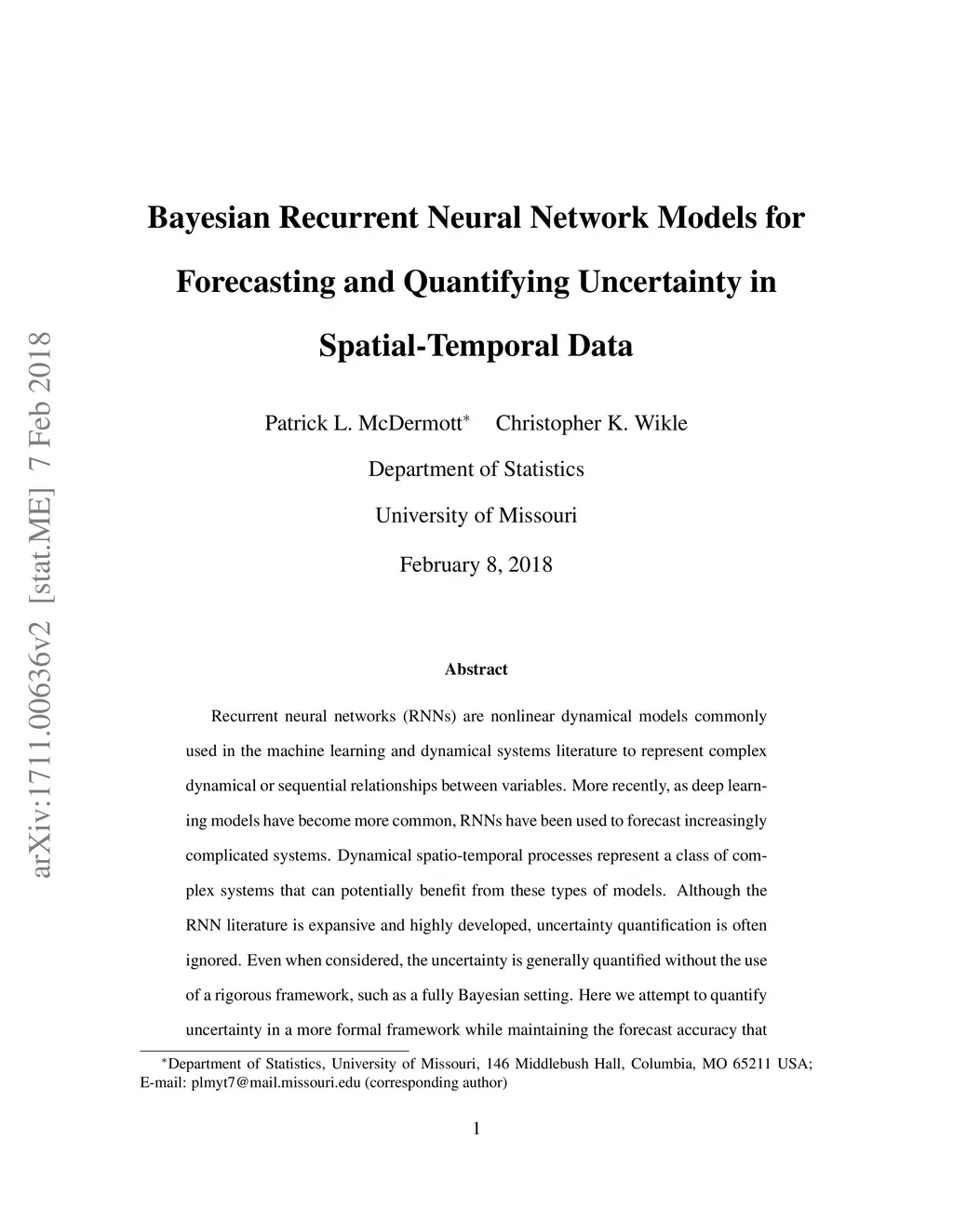 Bayesian Recurrent Neural Network Models for Forecasting and Quantifying