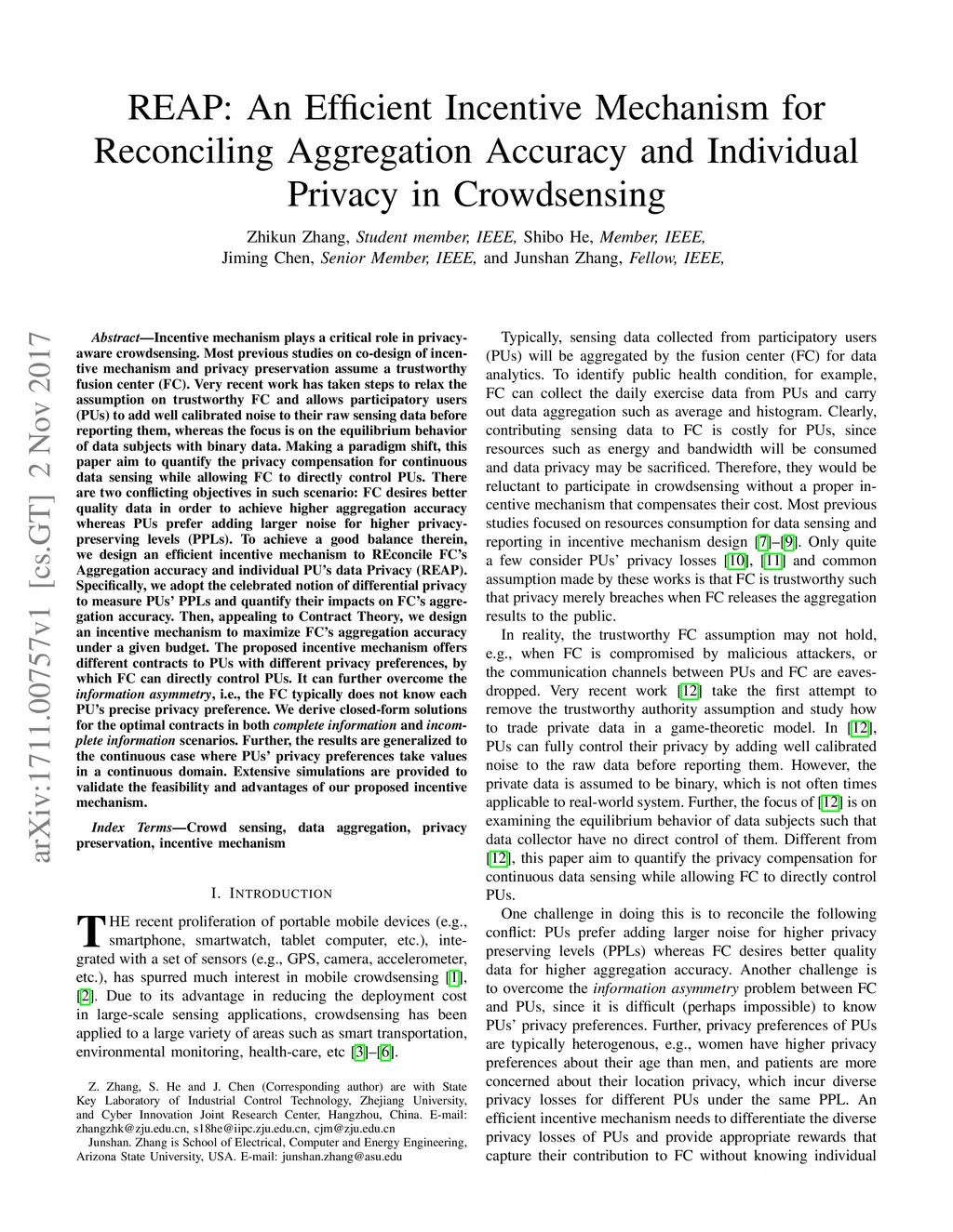 Incentive mechanism plays a critical role in privacy-aware crowdsensing. Most previous studies on co-design of incentive mechanism and privacy preservation assume a trustworthy fusion center (FC). Very recent work has taken steps to relax the assumption on trustworthy FC and allows participatory users (PUs) to add well calibrated noise to their raw sensing data before reporting them, whereas the focus is on the equilibrium behavior of data subjects with binary data. Making a paradigm shift, this paper aim to quantify the privacy compensation for continuous data sensing while allowing FC to directly control PUs. There are two conflicting objectives in such scenario: FC desires better quality data in order to achieve higher aggregation accuracy whereas PUs prefer adding larger noise for higher privacy-preserving levels (PPLs). To achieve a good balance therein, we design an efficient incentive mechanism to REconcile FC's Aggregation accuracy and individual PU's data Privacy (REAP). Specifically, we adopt the celebrated notion of differential privacy to measure PUs' PPLs and quantify their impacts on FC's aggregation accuracy. Then, appealing to Contract Theory, we design an incentive mechanism to maximize FC's aggregation accuracy under a given budget. The proposed incentive mechanism offers different contracts to PUs with different privacy preferences, by which FC can directly control PUs. It can further overcome the information asymmetry, i.e., the FC typically does not know each PU's precise privacy preference. We derive closed-form solutions for the optimal contracts in both complete information and incomplete information scenarios. Further, the results are generalized to the continuous case where PUs' privacy preferences take values in a continuous domain. Extensive simulations are provided to validate the feasibility and advantages of our proposed incentive mechanism.