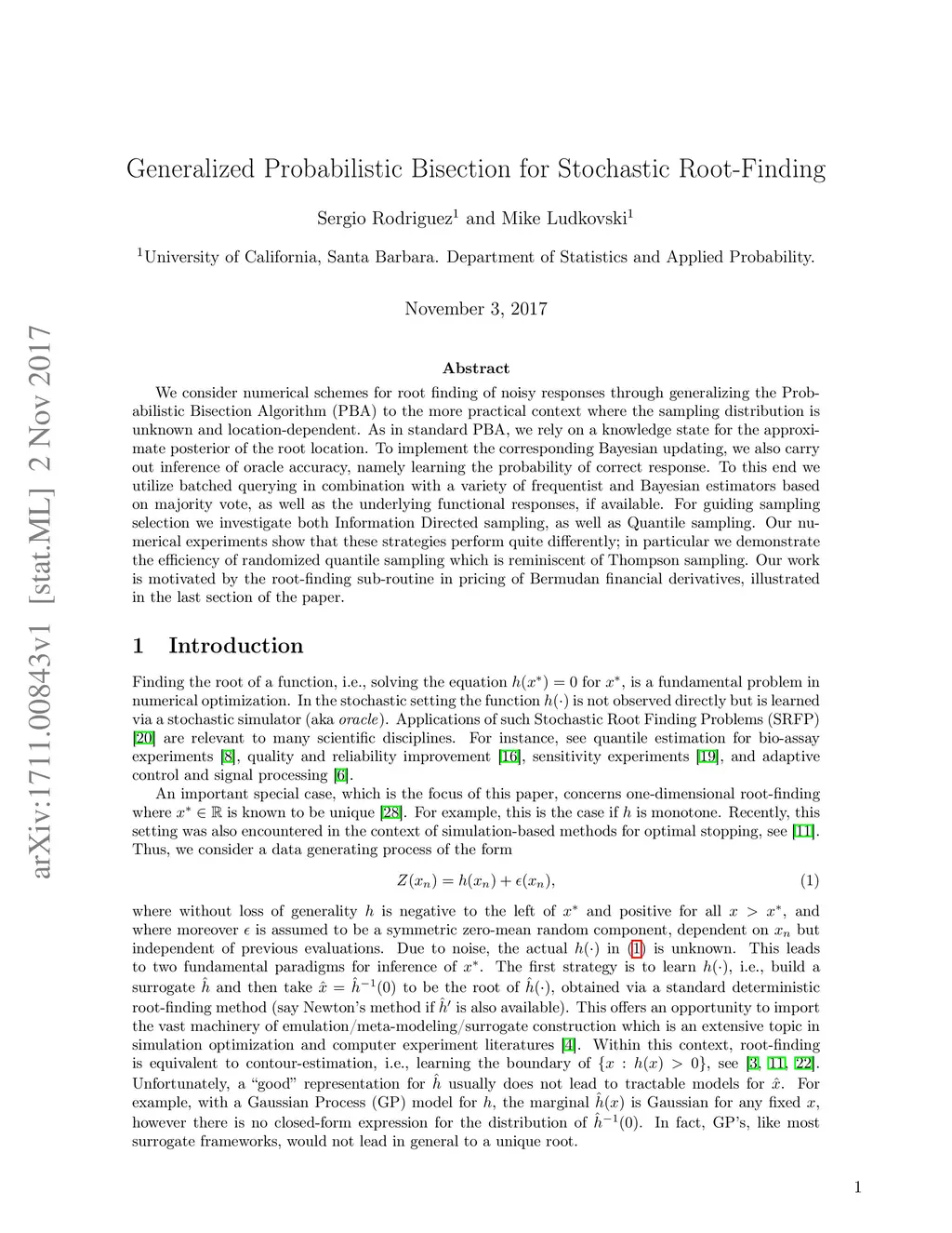We consider numerical schemes for root finding of noisy responses through generalizing the Probabilistic Bisection Algorithm (PBA) to the more practical context where the sampling distribution is unknown and location-dependent. As in standard PBA, we rely on a knowledge state for the approximate posterior of the root location. To implement the corresponding Bayesian updating, we also carry out inference of oracle accuracy, namely learning the probability of correct response. To this end we utilize batched querying in combination with a variety of frequentist and Bayesian estimators based on majority vote, as well as the underlying functional responses, if available. For guiding sampling selection we investigate both Information Directed sampling, as well as Quantile sampling. Our numerical experiments show that these strategies perform quite differently; in particular we demonstrate the efficiency of randomized quantile sampling which is reminiscent of Thompson sampling. Our work is motivated by the root-finding sub-routine in pricing of Bermudan financial derivatives, illustrated in the last section of the paper.