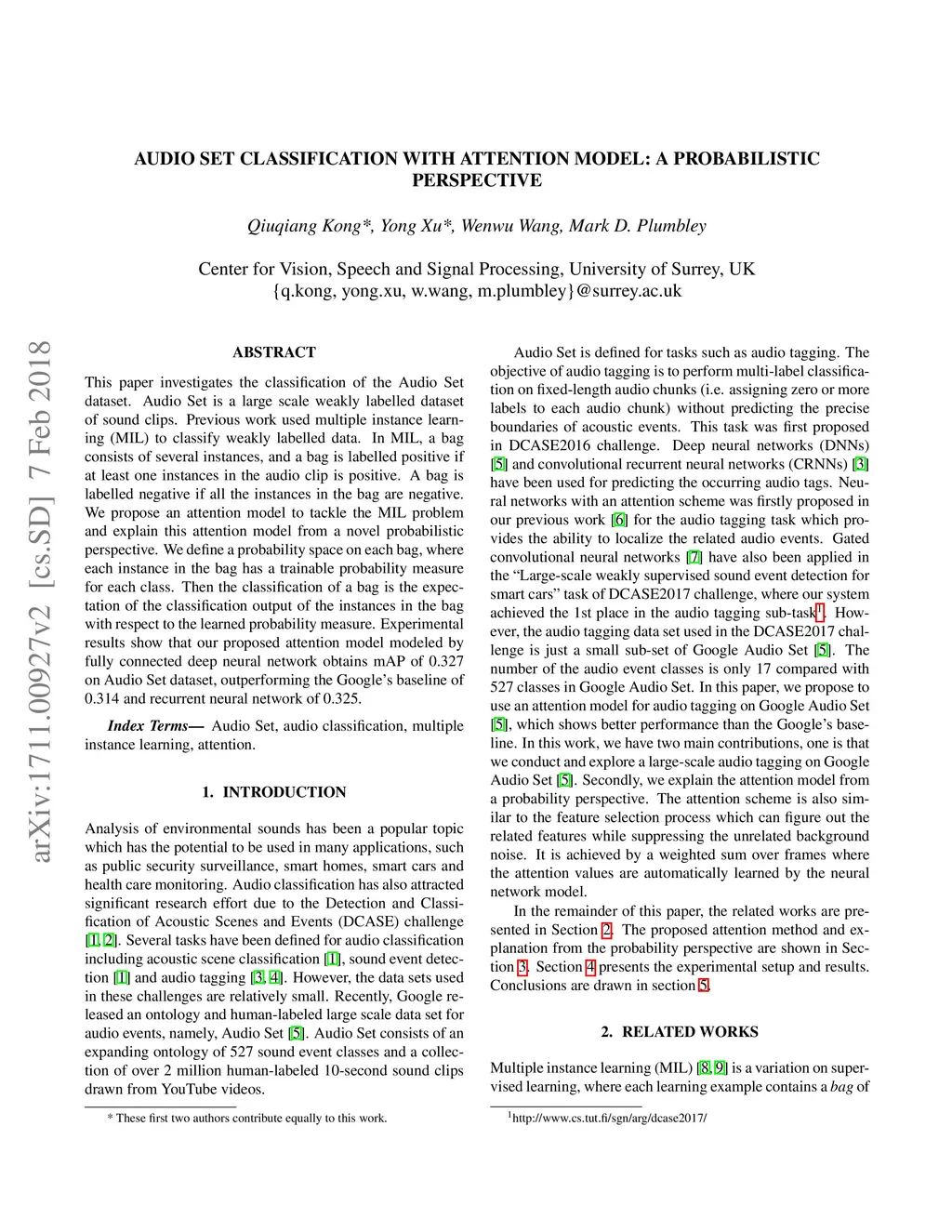Audio Set classification with attention model: A probabilistic