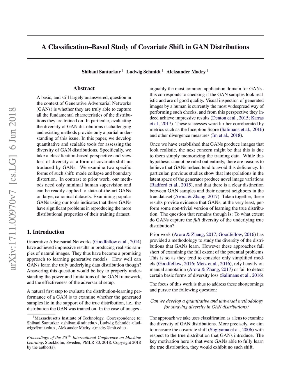A basic, and still largely unanswered, question in the context of Generative Adversarial Networks (GANs) is whether they are truly able to capture all the fundamental characteristics of the distributions they are trained on. In particular, evaluating the diversity of GAN distributions is challenging and existing methods provide only a partial understanding of this issue. In this paper, we develop quantitative and scalable tools for assessing the diversity of GAN distributions. Specifically, we take a classification-based perspective and view loss of diversity as a form of covariate shift introduced by GANs. We examine two specific forms of such shift: mode collapse and boundary distortion. In contrast to prior work, our methods need only minimal human supervision and can be readily applied to state-of-the-art GANs on large, canonical datasets. Examining popular GANs using our tools indicates that these GANs have significant problems in reproducing the more distributional properties of their training dataset.