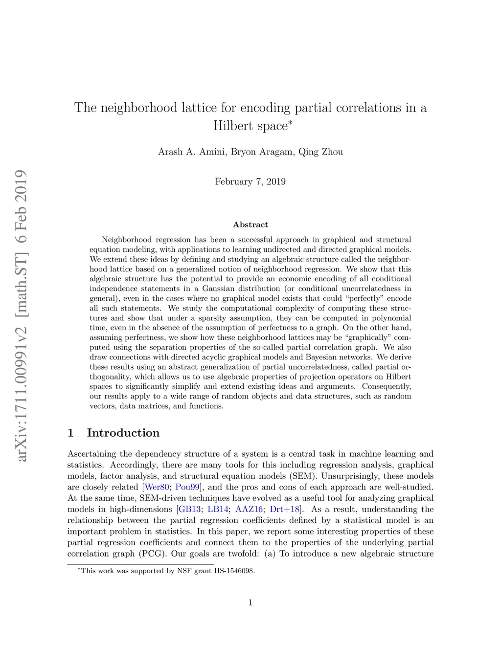 We define and study partial correlation graphs (PCGs) with variables in a general Hilbert space and their connections to generalized neighborhood regression, without making any distributional assumptions. Using operator-theoretic arguments, and especially the properties of projection operators on Hilbert spaces, we show that these neighborhood regressions have the algebraic structure of a lattice, which we call a neighborhood lattice. This lattice property significantly reduces the number of conditions one has to check when testing all partial correlation relations among a collection of variables. In addition, we generalize the notion of perfectness in graphical models for a general PCG to this Hilbert space setting, and establish that almost all Gram matrices are perfect. Under this perfectness assumption, we show how these neighborhood lattices may be "graphically" computed using separation properties of PCGs. We also discuss extensions of these ideas to directed models, which present unique challenges compared to their undirected counterparts. Our results have implications for multivariate statistical learning in general, including structural equation models, subspace clustering, and dimension reduction. For example, we discuss how to compute neighborhood lattices efficiently and furthermore how they can be used to reduce the sample complexity of learning directed acyclic graphs. Our work demonstrates that this abstract viewpoint via projection operators significantly simplifies existing ideas and arguments from the graphical modeling literature, and furthermore can be used to extend these ideas to more general nonparametric settings.