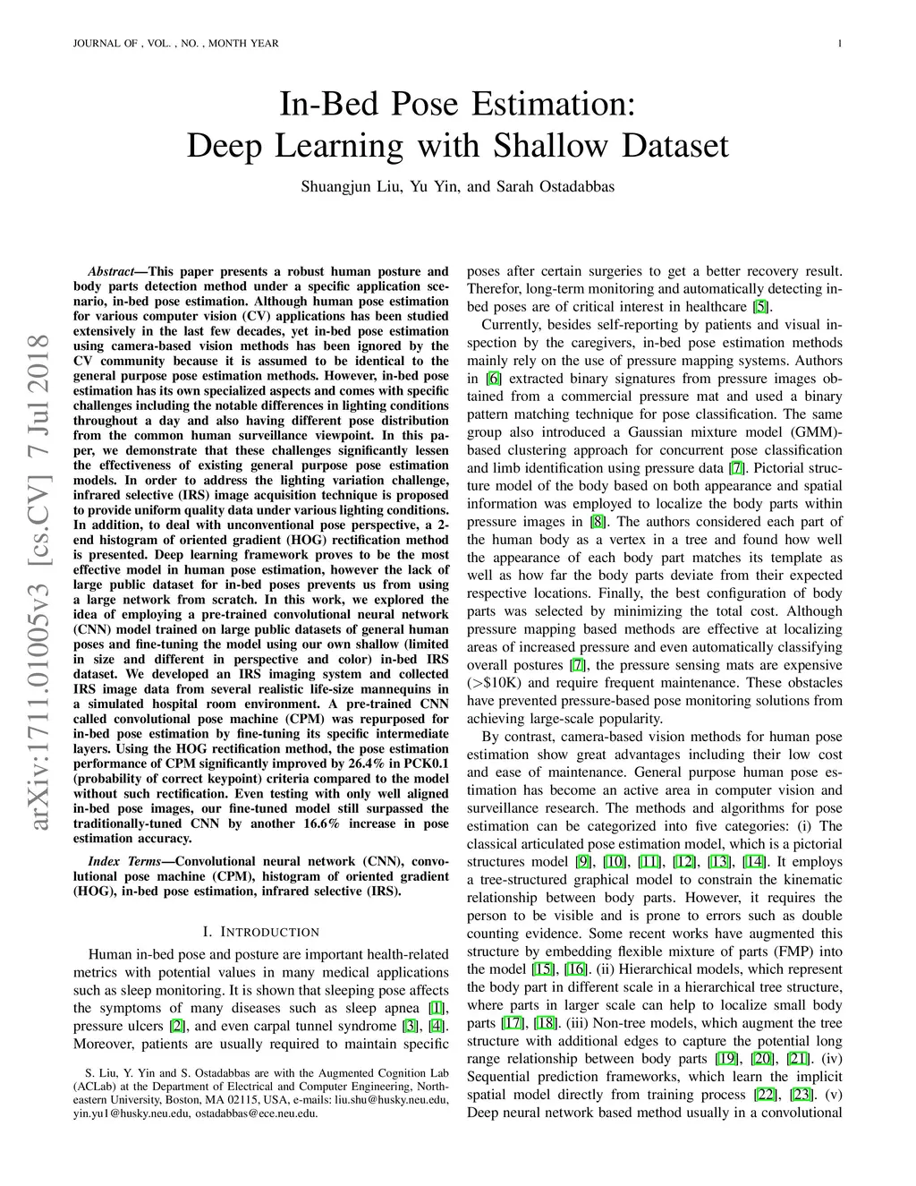 In-Bed Pose Estimation: Deep Learning with Shallow Dataset