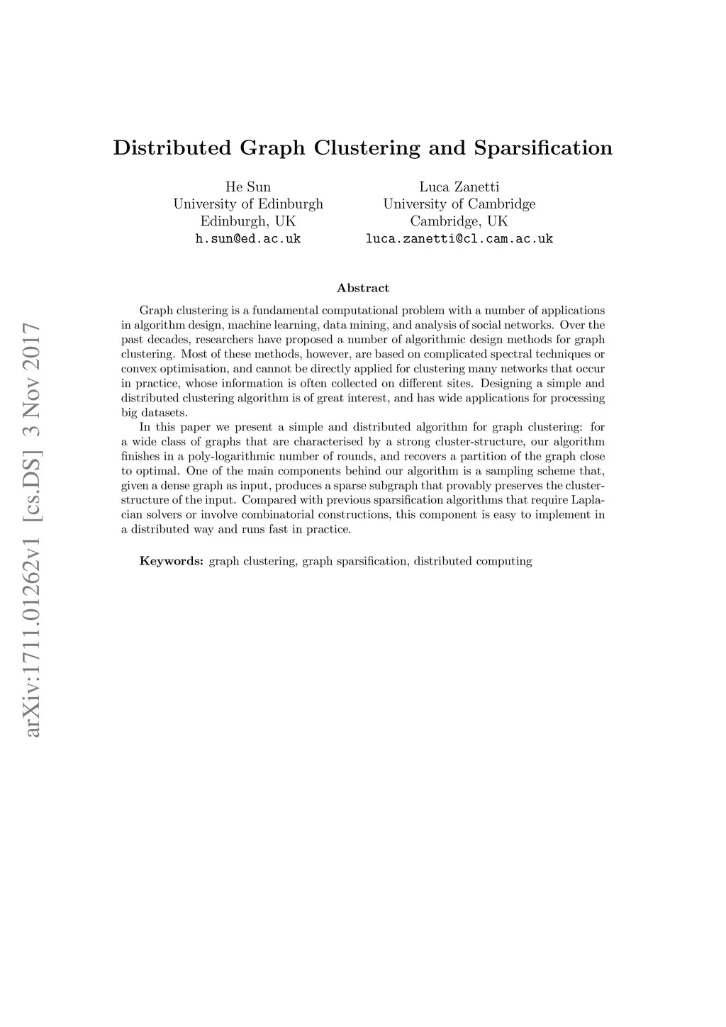 Graph clustering is a fundamental computational problem with a number of applications in algorithm design, machine learning, data mining, and analysis of social networks. Over the past decades, researchers have proposed a number of algorithmic design methods for graph clustering. Most of these methods, however, are based on complicated spectral techniques or convex optimisation, and cannot be directly applied for clustering many networks that occur in practice, whose information is often collected on different sites. Designing a simple and distributed clustering algorithm is of great interest, and has wide applications for processing big datasets. In this paper we present a simple and distributed algorithm for graph clustering: for a wide class of graphs that are characterised by a strong cluster-structure, our algorithm finishes in a poly-logarithmic number of rounds, and recovers a partition of the graph close to optimal. One of the main components behind our algorithm is a sampling scheme that, given a dense graph as input, produces a sparse subgraph that provably preserves the cluster-structure of the input. Compared with previous sparsification algorithms that require Laplacian solvers or involve combinatorial constructions, this component is easy to implement in a distributed way and runs fast in practice.