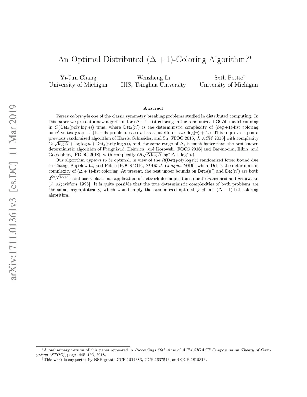Vertex coloring is one of the classic symmetry breaking problems studied in distributed computing. In this paper we present a new algorithm for -list coloring in the randomized model running in time, where is the deterministic complexity of -list coloring ('s palette has size ) on -vertex graphs. This improves upon a previous randomized algorithm of Harris, Schneider, and Su (STOC 2016). with complexity , and is dramatically faster than the best known deterministic algorithm of Fraigniaud, Heinrich, and Kosowski (FOCS 2016), with complexity . Our algorithm appears to be optimal. It matches the randomized lower bound, due to Naor (SIDMA 1991) and sort of matches the randomized lower bound due to Chang, Kopelowitz, and Pettie (FOCS 2016), where is the deterministic complexity of -list coloring. The best known upper bounds on and are both by Panconesi and Srinivasan (Journal of Algorithms 1996), and it is quite plausible that the complexities of both problems are the same, asymptotically.