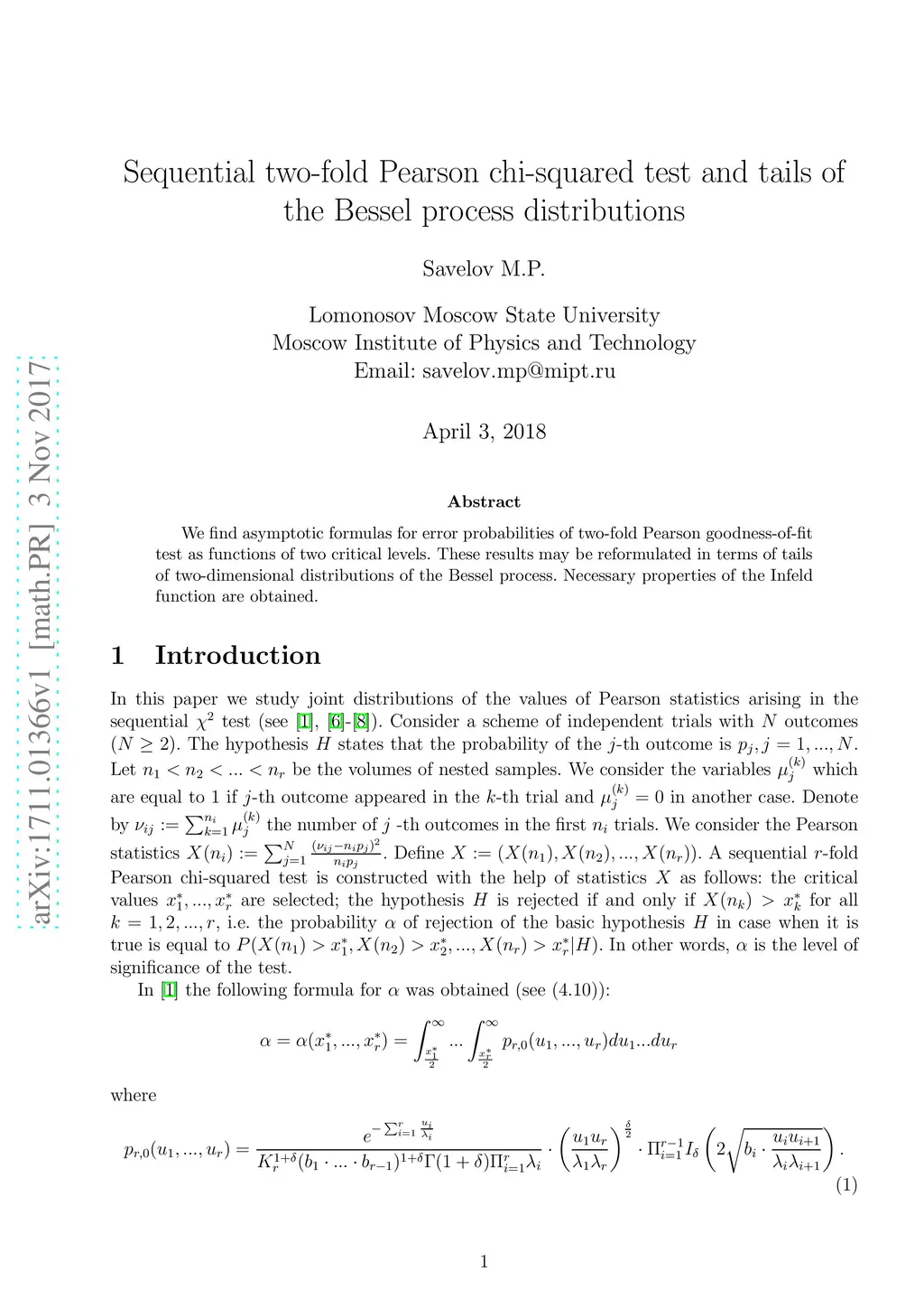 Sequential two-fold Pearson chi-squared test and tails of the Bessel