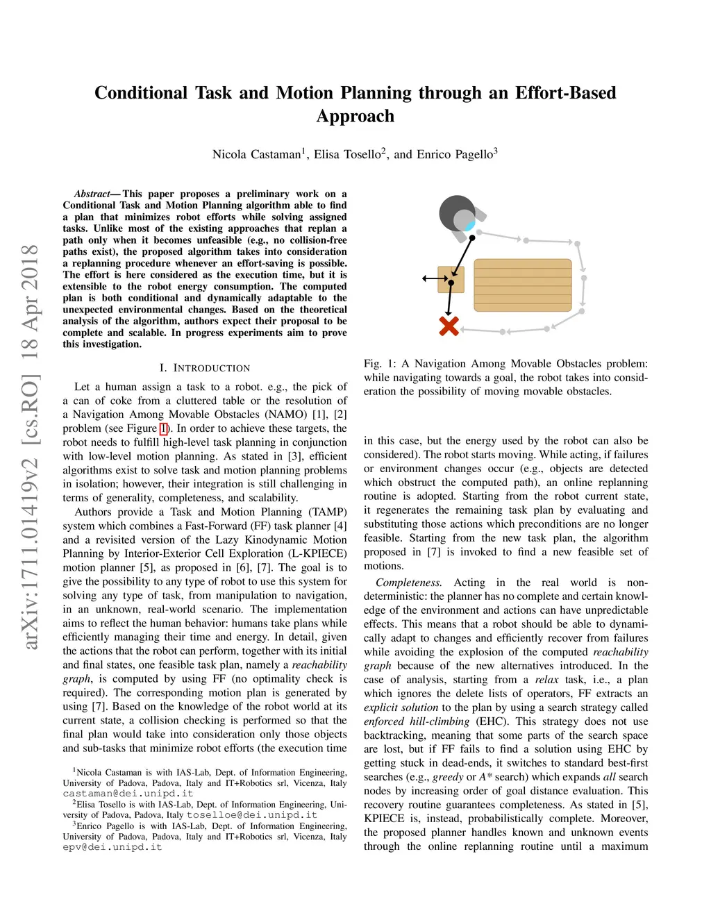 Conditional Task and Motion Planning through an Effort-based Approach