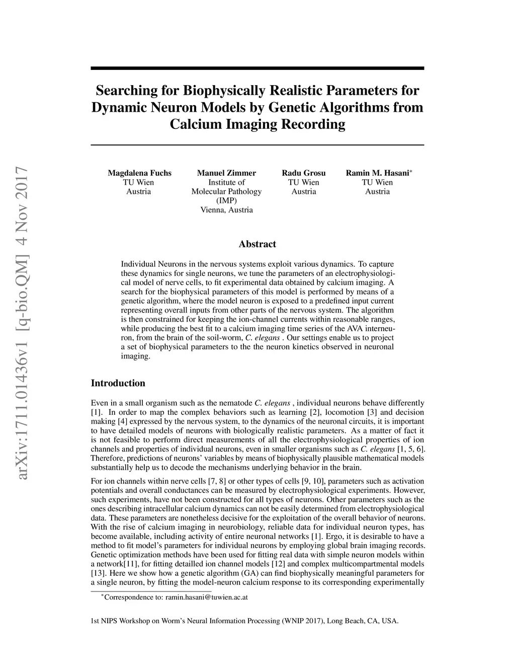 Models by Genetic Algorithms from Calcium Imaging Recording