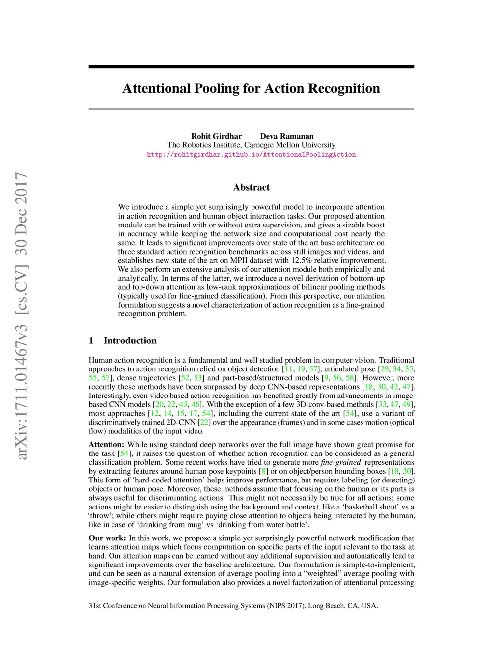 Attentional Pooling for Action Recognition