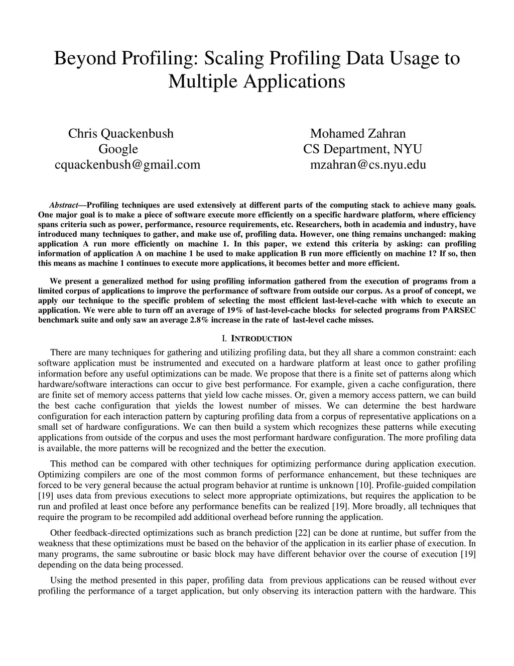 Profiling techniques are used extensively at different parts of the computing stack to achieve many goals. One major goal is to make a piece of software execute more efficiently on a specific hardware platform, where efficiency spans criteria such as power, performance, resource requirements, etc. Researchers, both in academia and industry, have introduced many techniques to gather, and make use of, profiling data. However, one thing remains unchanged: making application A run more efficiently on machine 1. In this paper, we extend this criteria by asking: can profiling information of application A on machine 1 be used to make application B run more efficiently on machine 1? If so, then this means as machine 1 continues to execute more applications, it becomes better and more efficient. We present a generalized method for using profiling information gathered from the execution of programs from a limited corpus of applications to improve the performance of software from outside our corpus. As a proof of concept, we apply our technique to the specific problem of selecting the most efficient last-level-cache with which to execute an application. We were able to turn off an average of 19% of last-level-cache blocks for selected programs from PARSEC benchmark suite and only saw an average 2.8% increase in the rate of last-level cache misses.