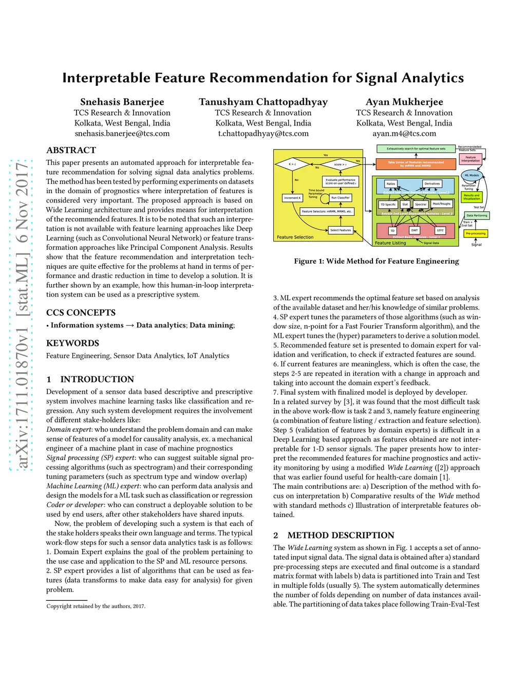This paper presents an automated approach for interpretable feature recommendation for solving signal data analytics problems. The method has been tested by performing experiments on datasets in the domain of prognostics where interpretation of features is considered very important. The proposed approach is based on Wide Learning architecture and provides means for interpretation of the recommended features. It is to be noted that such an interpretation is not available with feature learning approaches like Deep Learning (such as Convolutional Neural Network) or feature transformation approaches like Principal Component Analysis. Results show that the feature recommendation and interpretation techniques are quite effective for the problems at hand in terms of performance and drastic reduction in time to develop a solution. It is further shown by an example, how this human-in-loop interpretation system can be used as a prescriptive system.