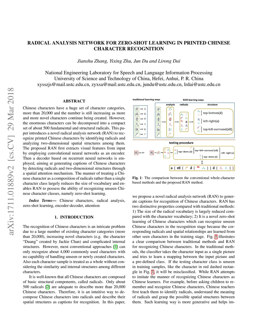 Radical analysis network for zero-shot learning in printed Chinese
