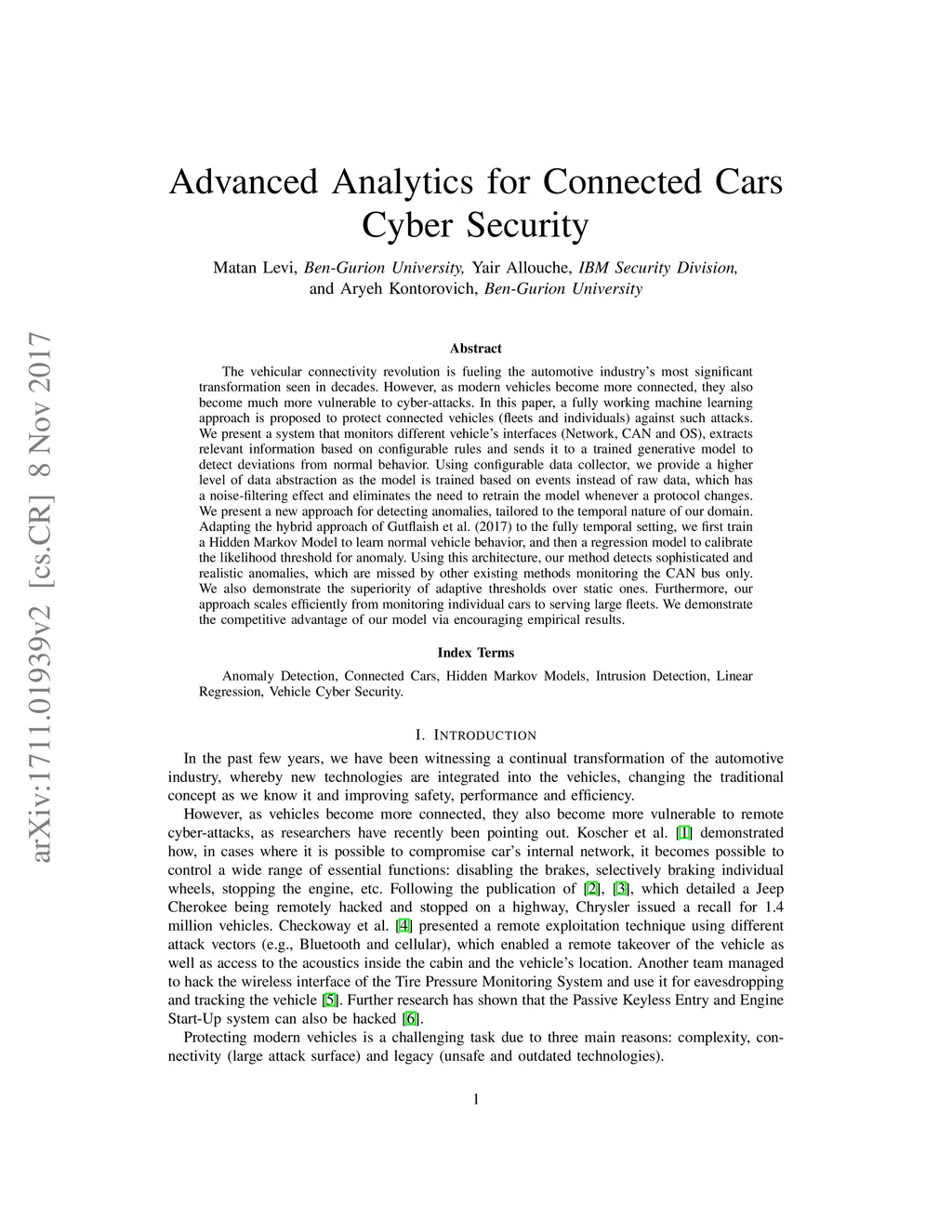 Advanced Analytics for Connected Cars Cyber Security