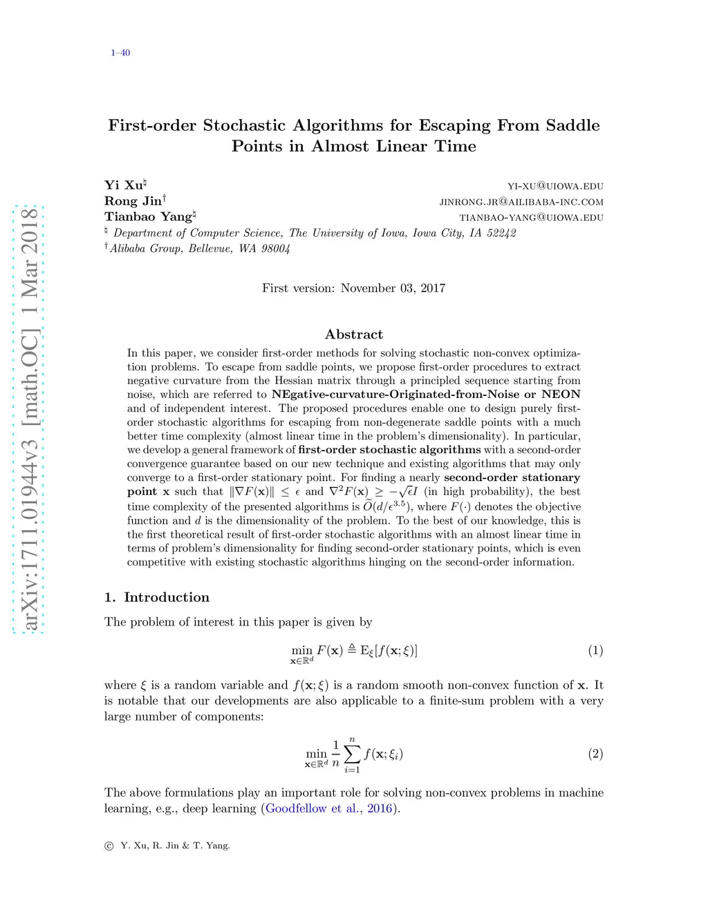 First-order Stochastic Algorithms for Escaping From Saddle Points in