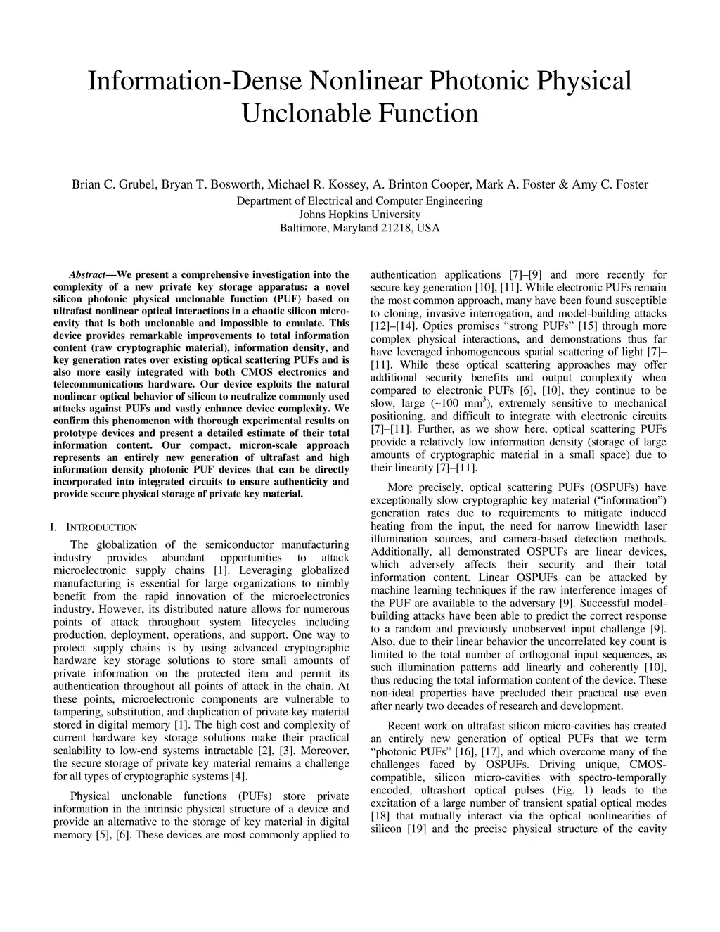 Information-Dense Nonlinear Photonic Physical Unclonable Function