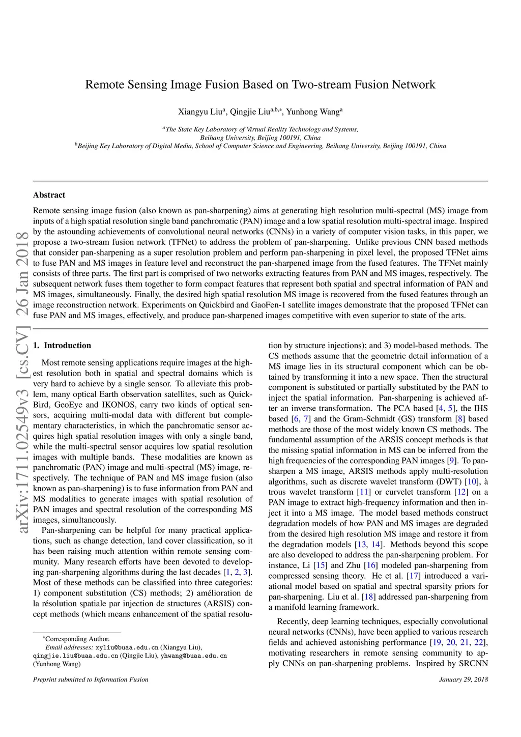 Remote Sensing Image Fusion Based on Two-stream Fusion Network