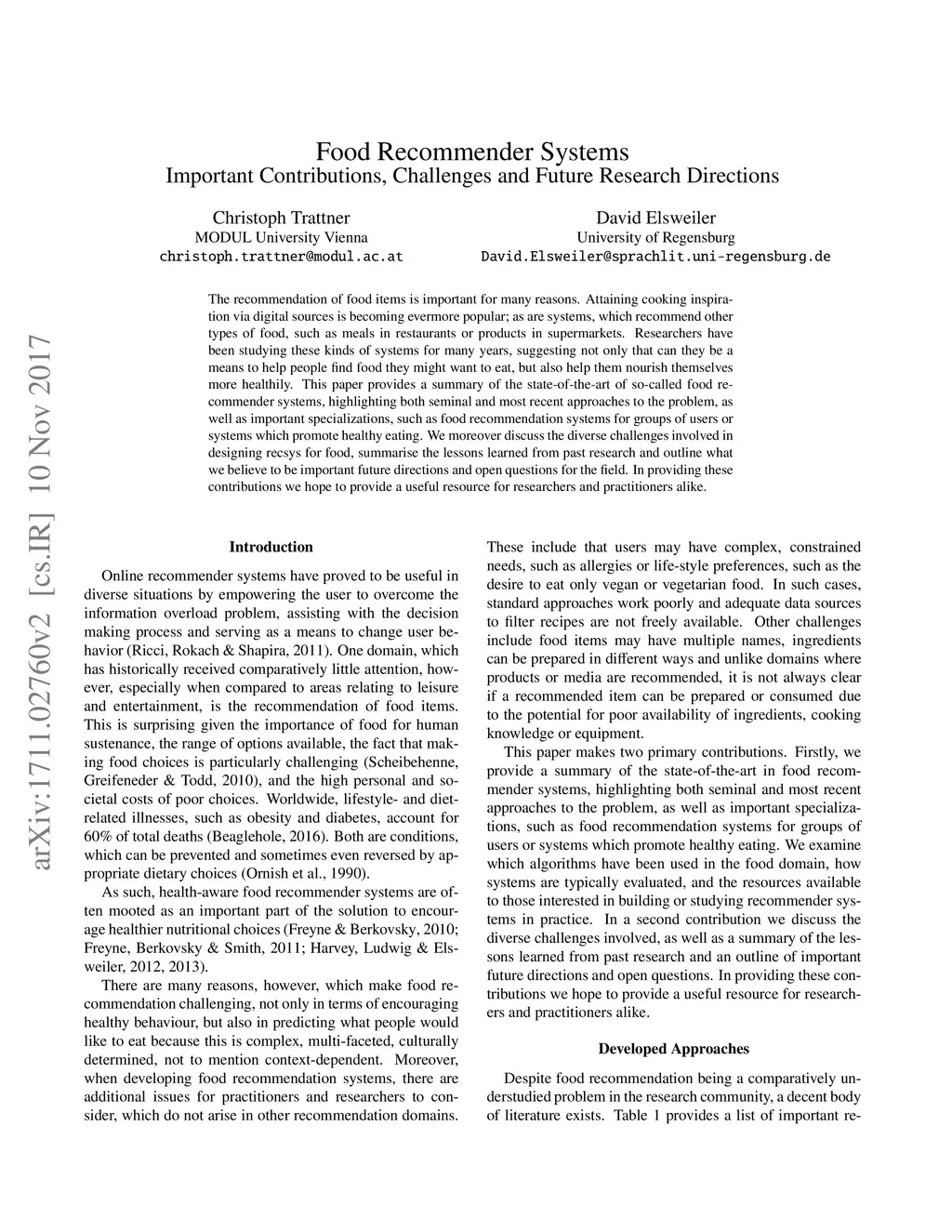Food Recommender Systems: Important Contributions, Challenges and Future