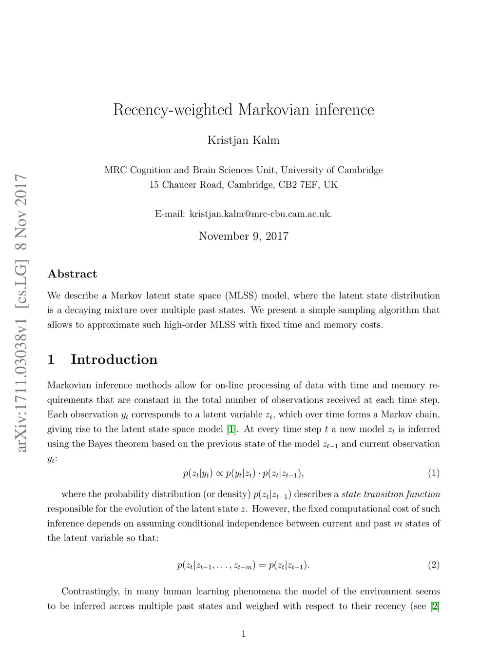 Recency-weighted Markovian inference