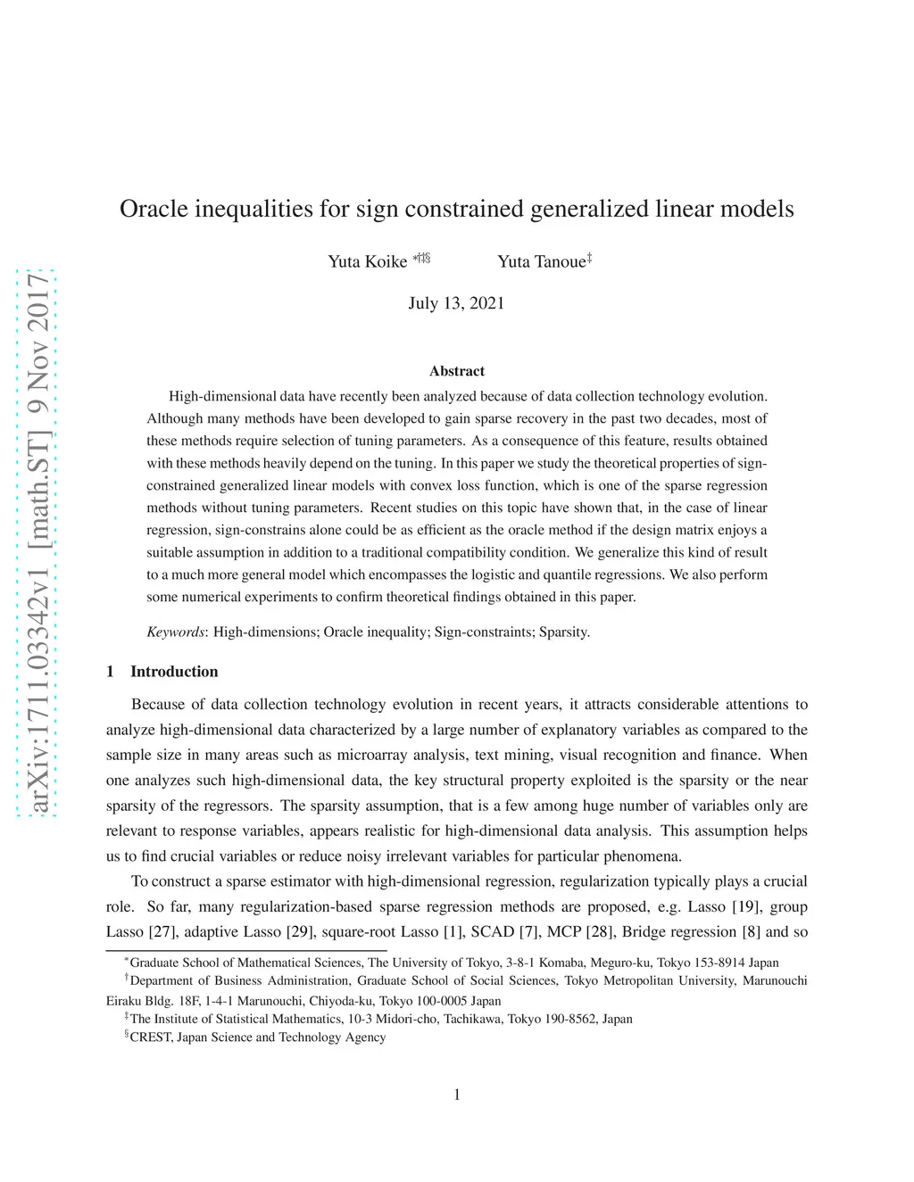 High-dimensional data have recently been analyzed because of data collection technology evolution. Although many methods have been developed to gain sparse recovery in the past two decades, most of these methods require selection of tuning parameters. As a consequence of this feature, results obtained with these methods heavily depend on the tuning. In this paper we study the theoretical properties of sign-constrained generalized linear models with convex loss function, which is one of the sparse regression methods without tuning parameters. Recent studies on this topic have shown that, in the case of linear regression, sign-constrains alone could be as efficient as the oracle method if the design matrix enjoys a suitable assumption in addition to a traditional compatibility condition. We generalize this kind of result to a much more general model which encompasses the logistic and quantile regressions. We also perform some numerical experiments to confirm theoretical findings obtained in this paper.