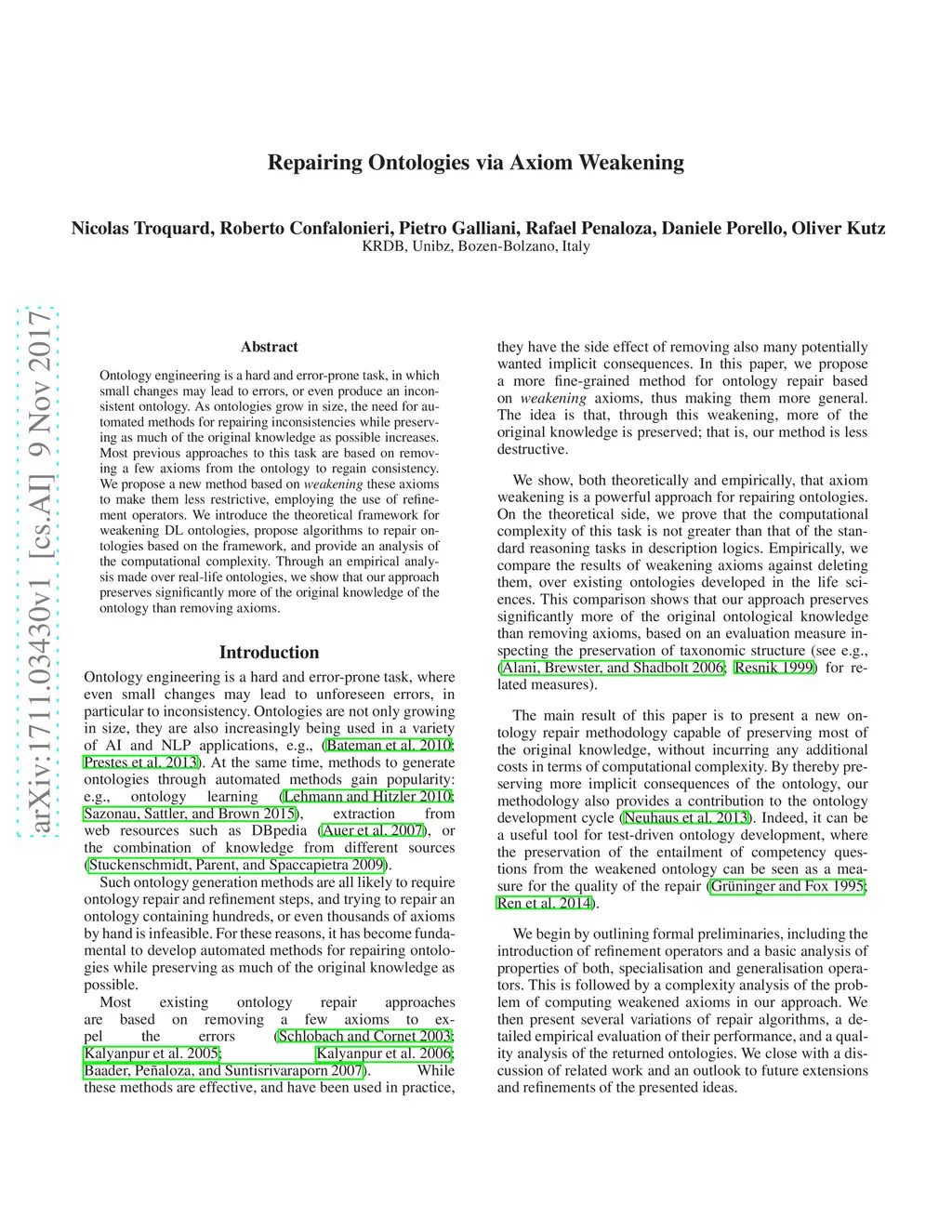Repairing Ontologies via Axiom Weakening