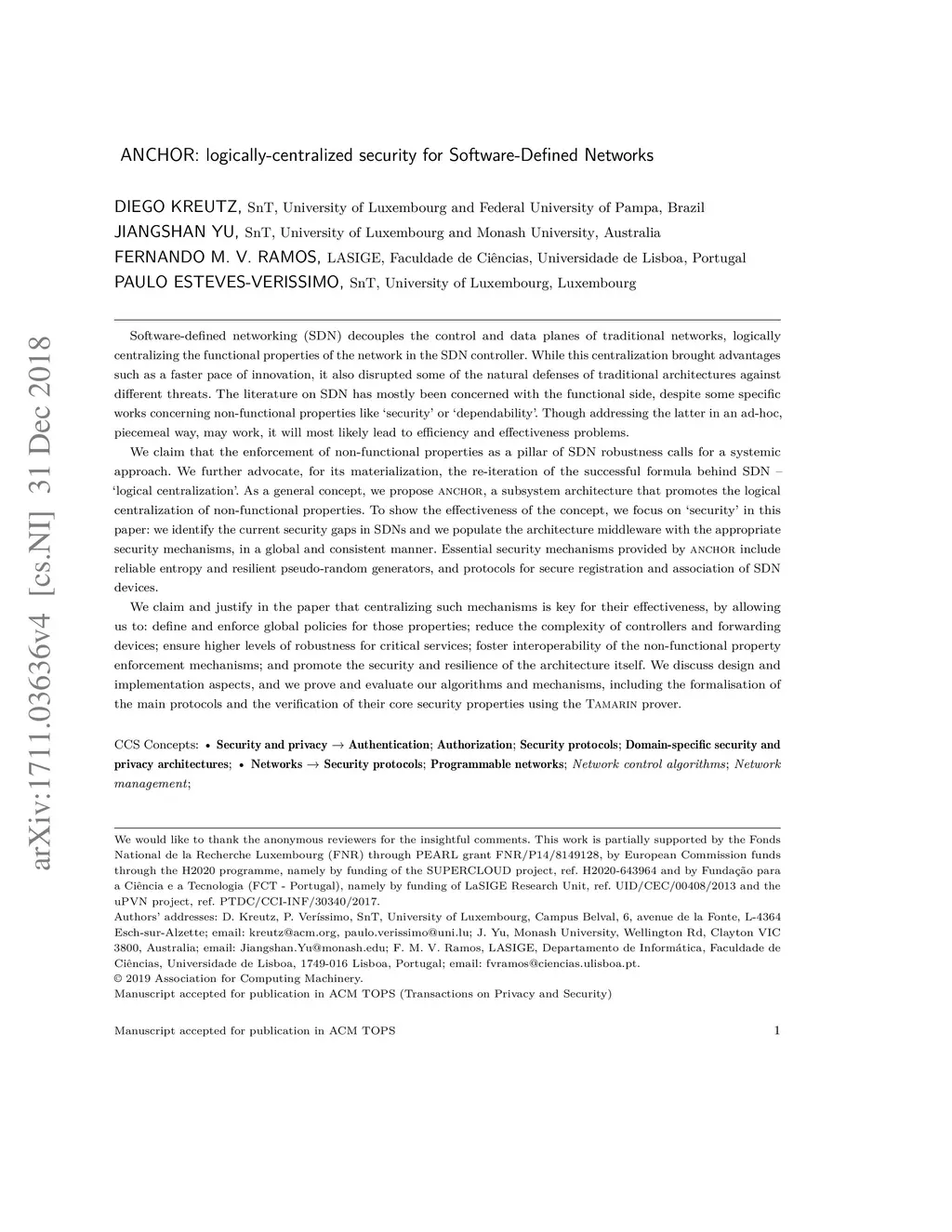 ANCHOR: logically-centralized security for Software-Defined Networks